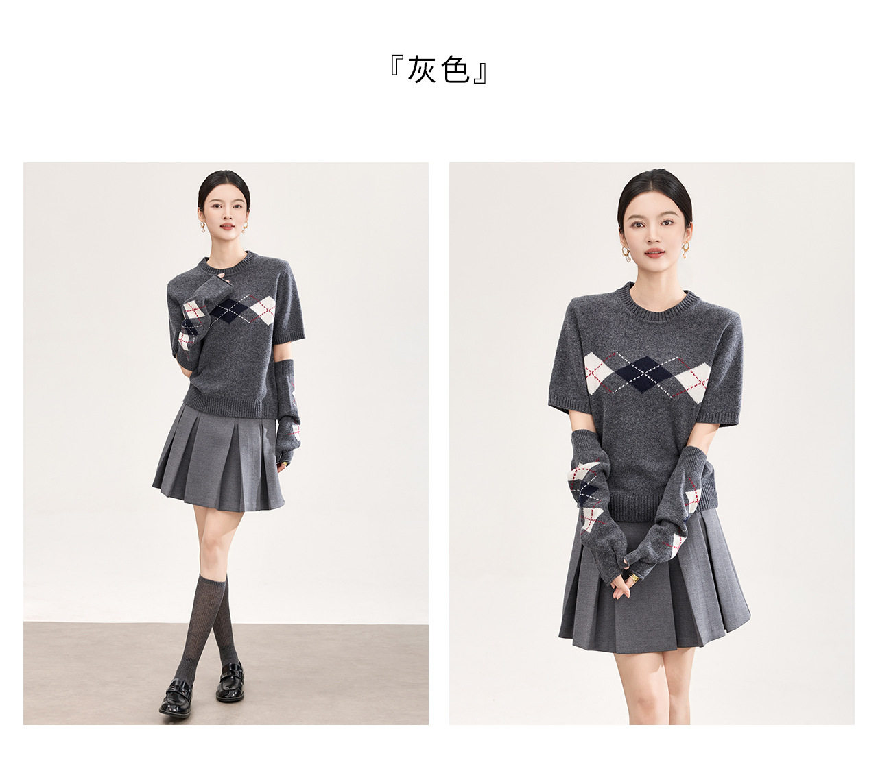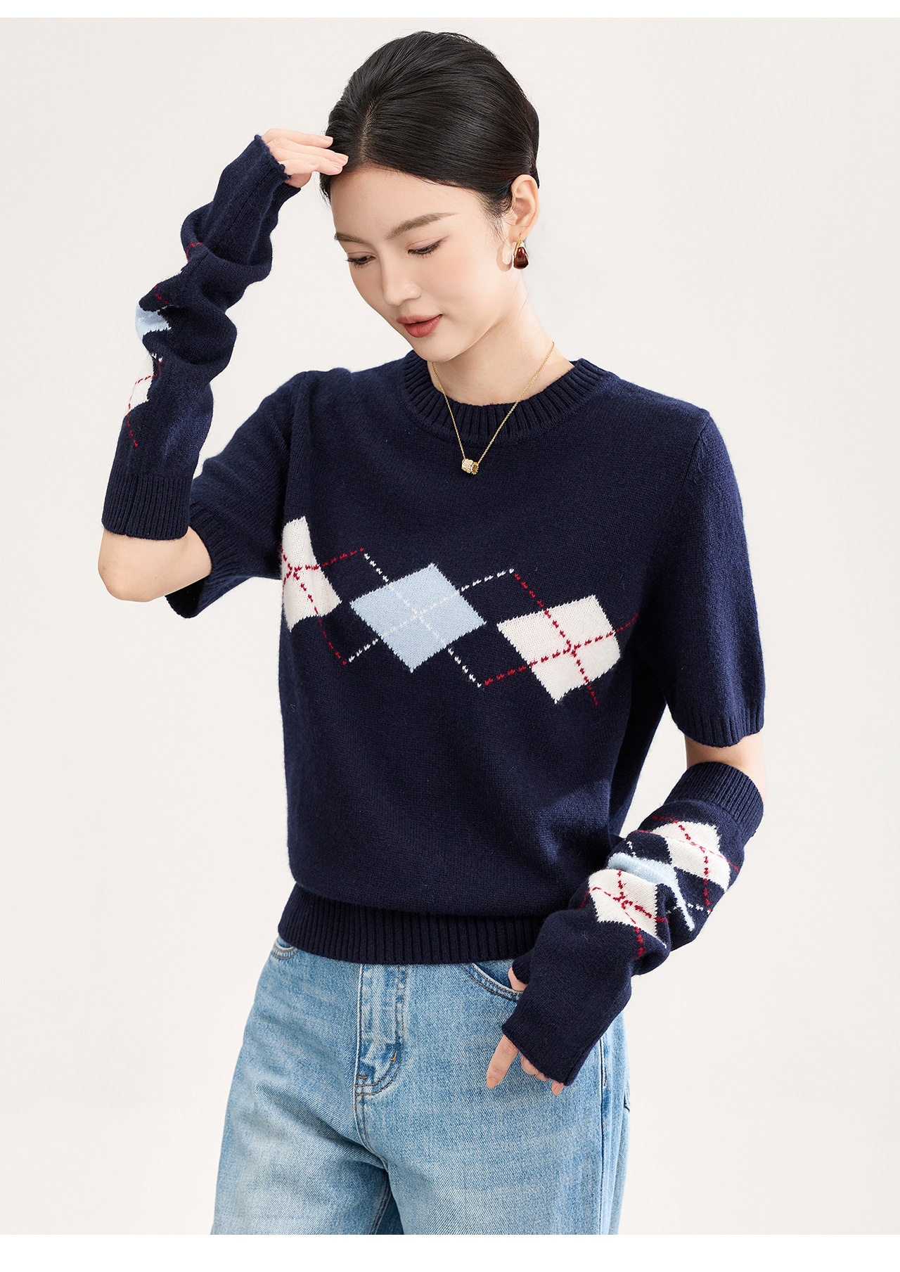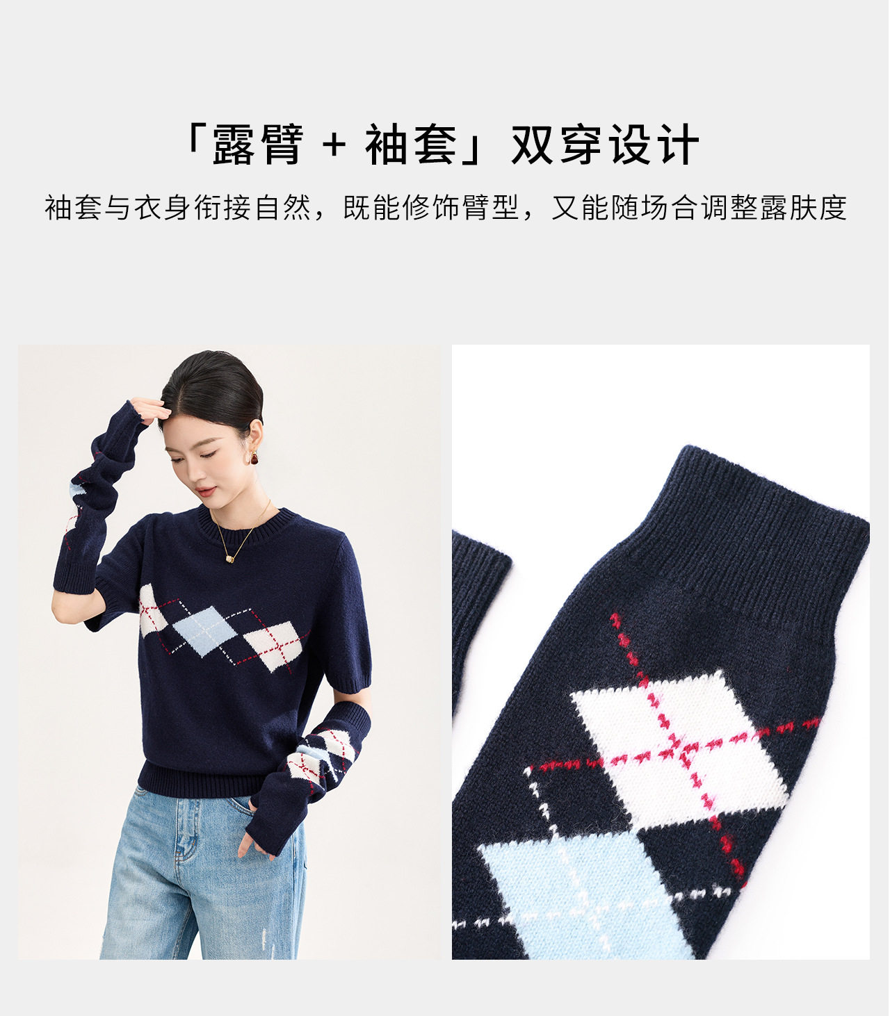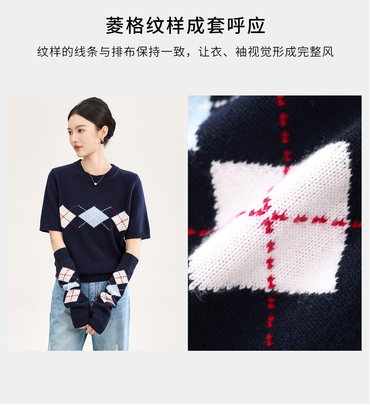 「高货wl」全新升级【铂金会员330/天猫439/差价109】(05134)洛诗琳四平密织菱格提花羊毛上衣2026春季新款复古慵懒袖套短袖针织上衣