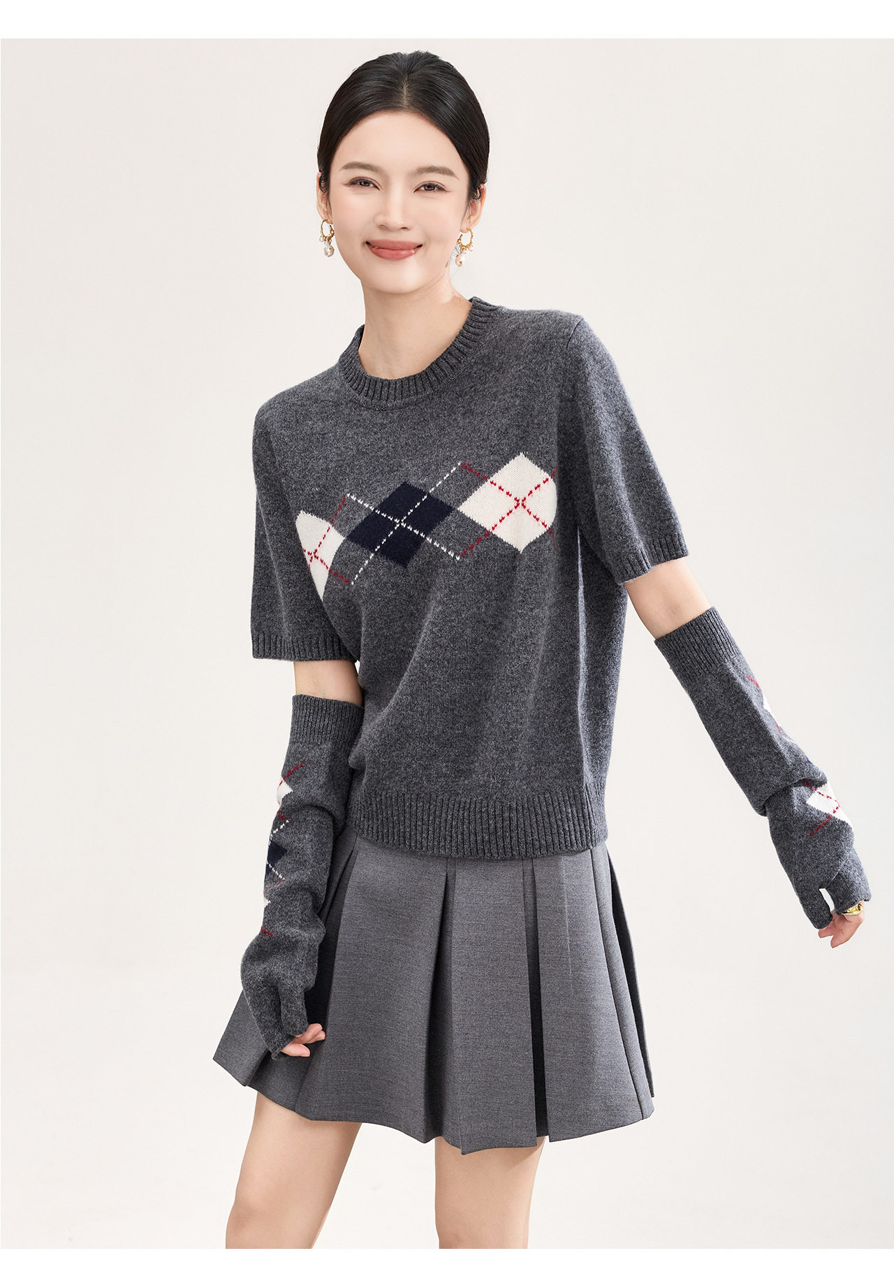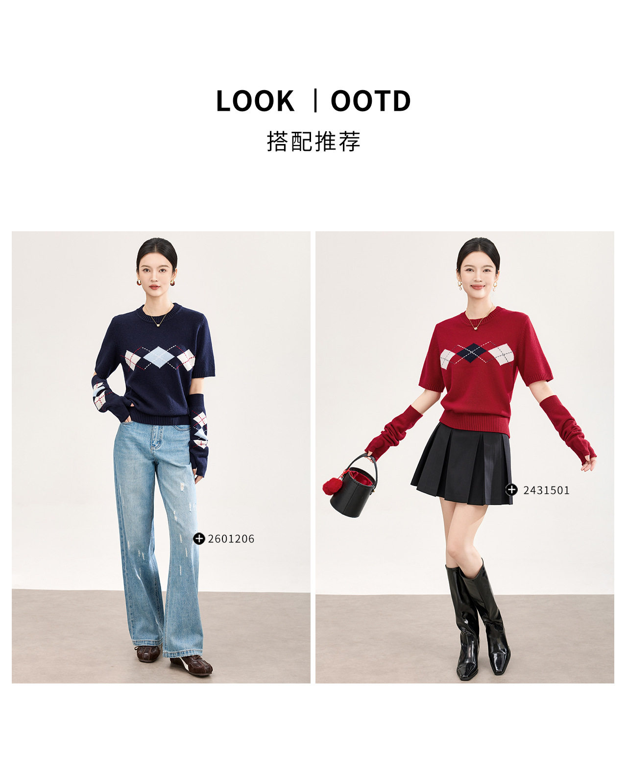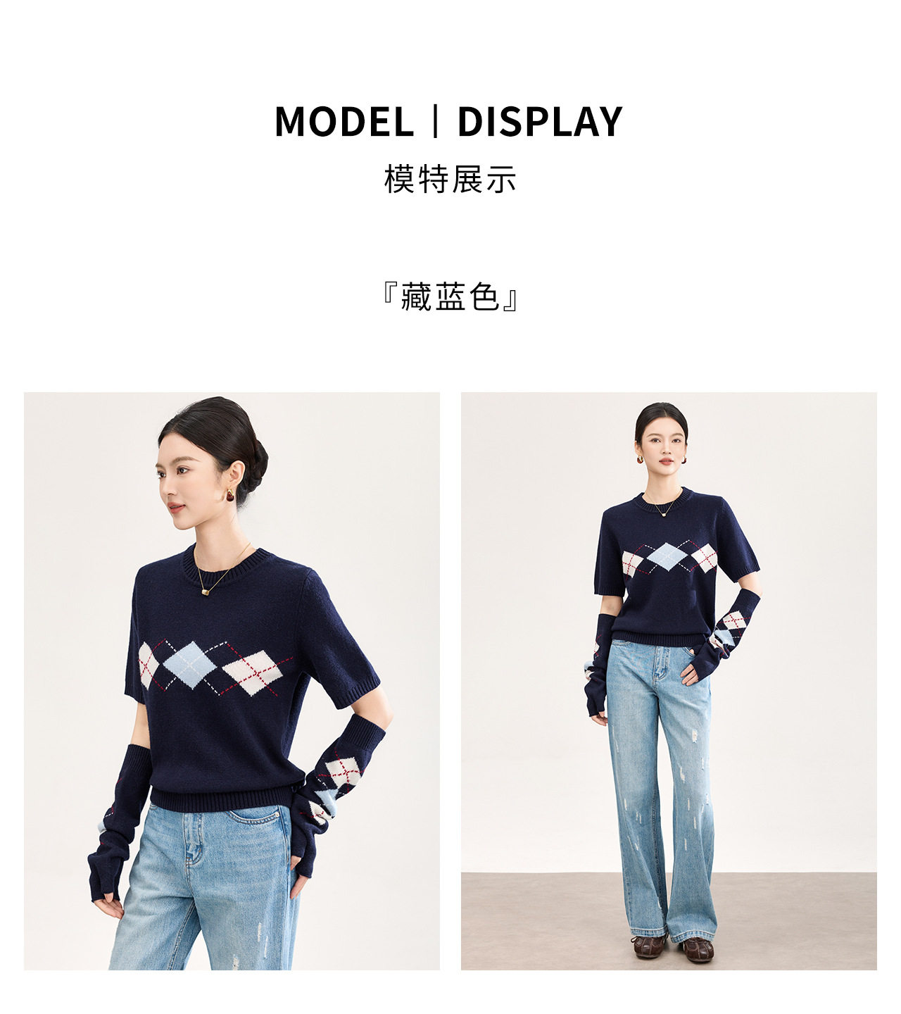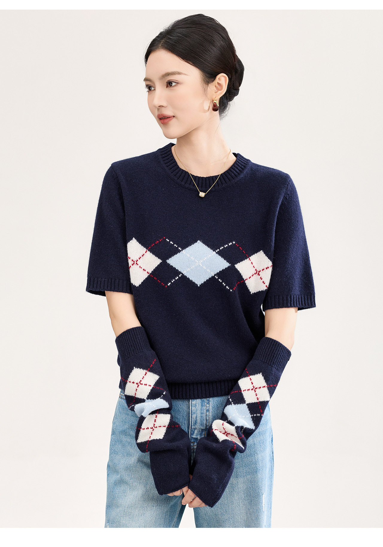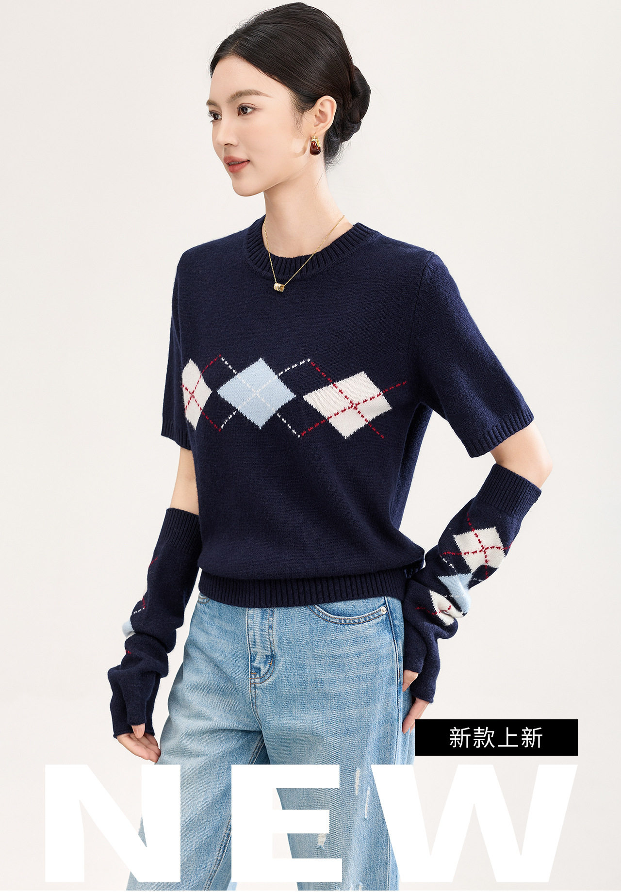 「高货wl」全新升级【铂金会员330/天猫439/差价109】(05134)洛诗琳四平密织菱格提花羊毛上衣2026春季新款复古慵懒袖套短袖针织上衣