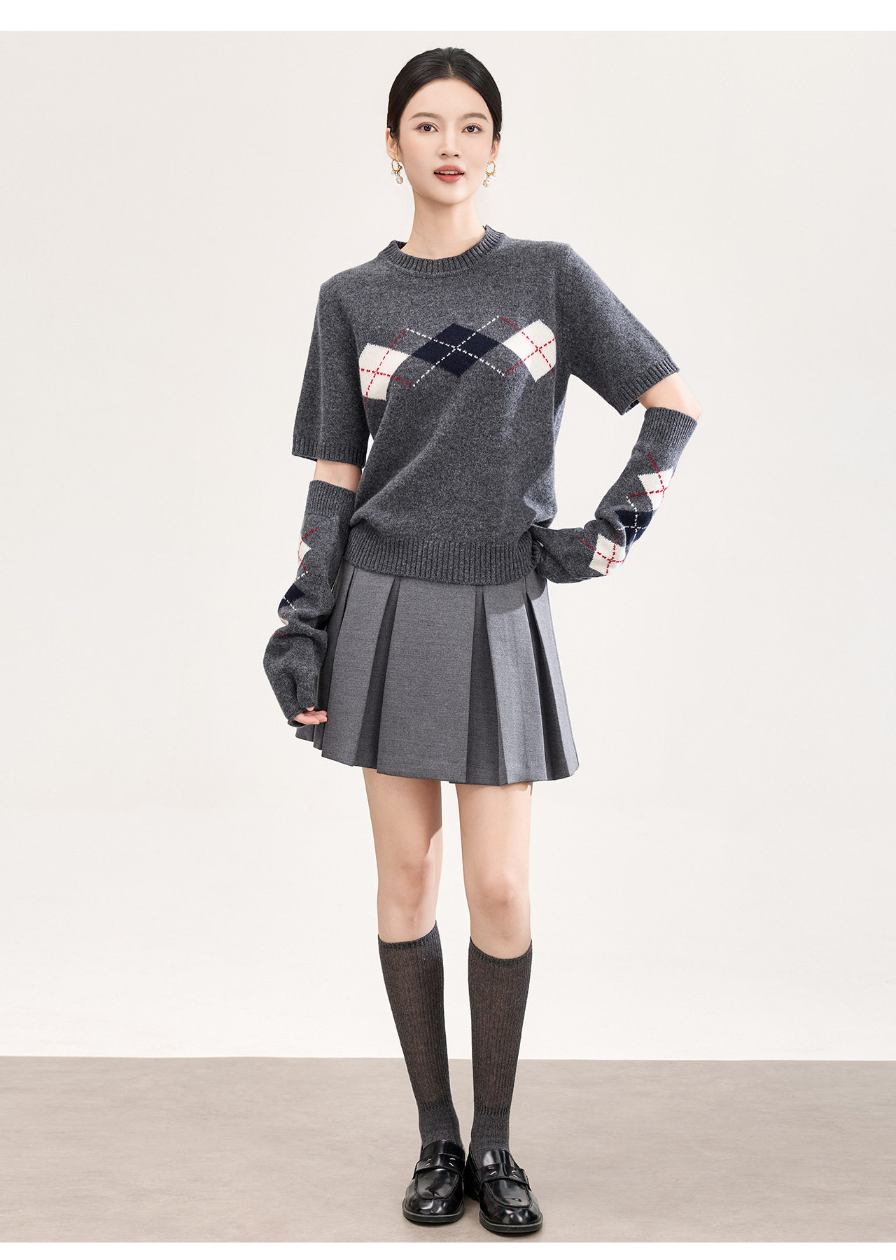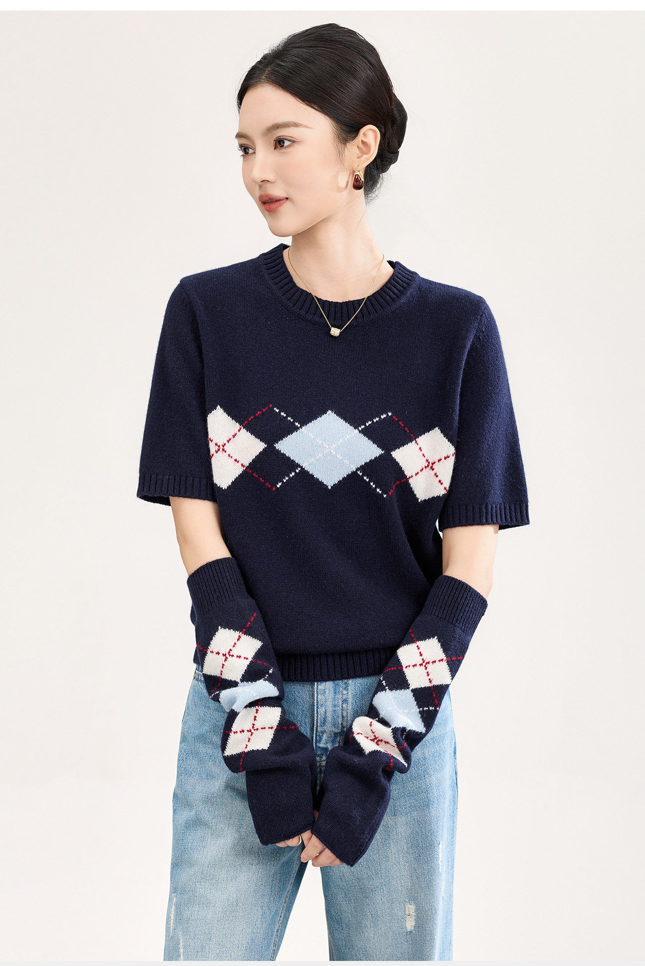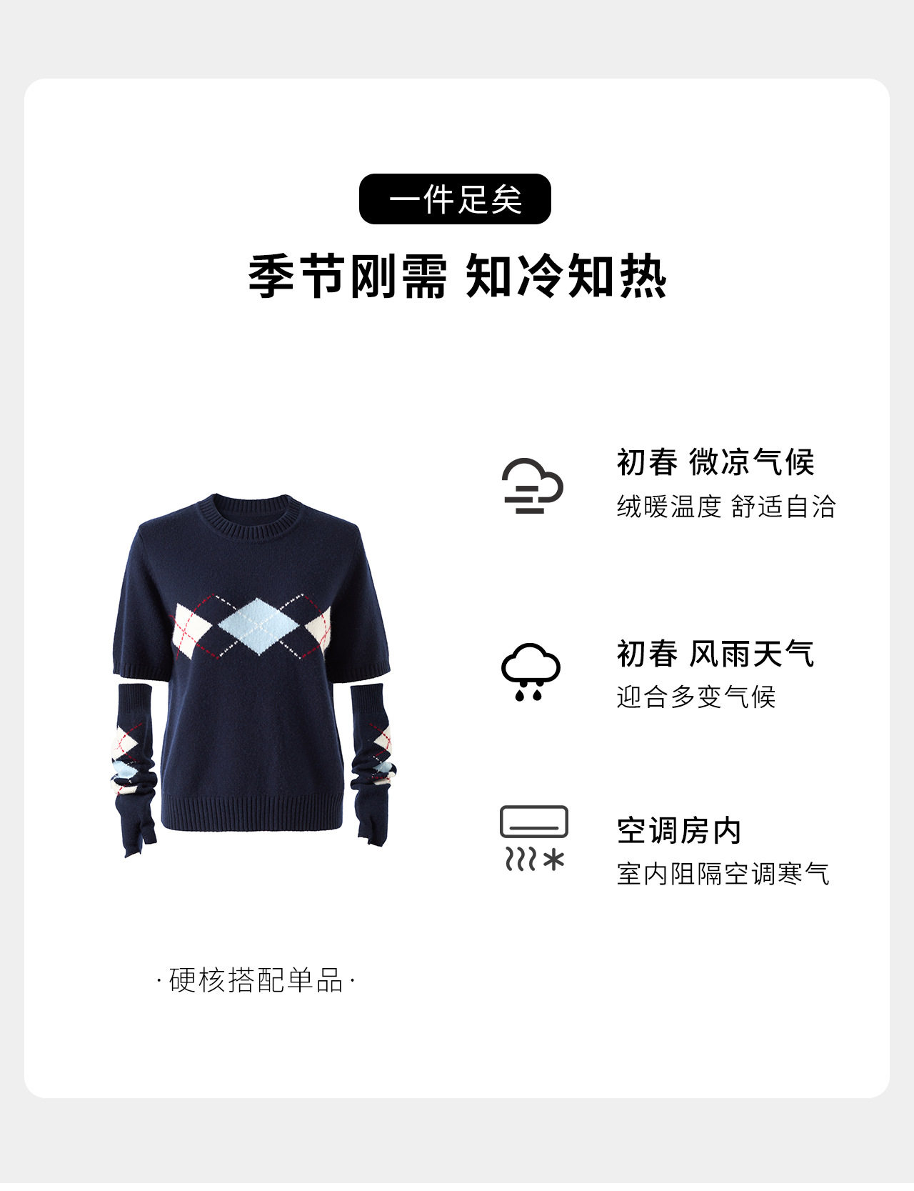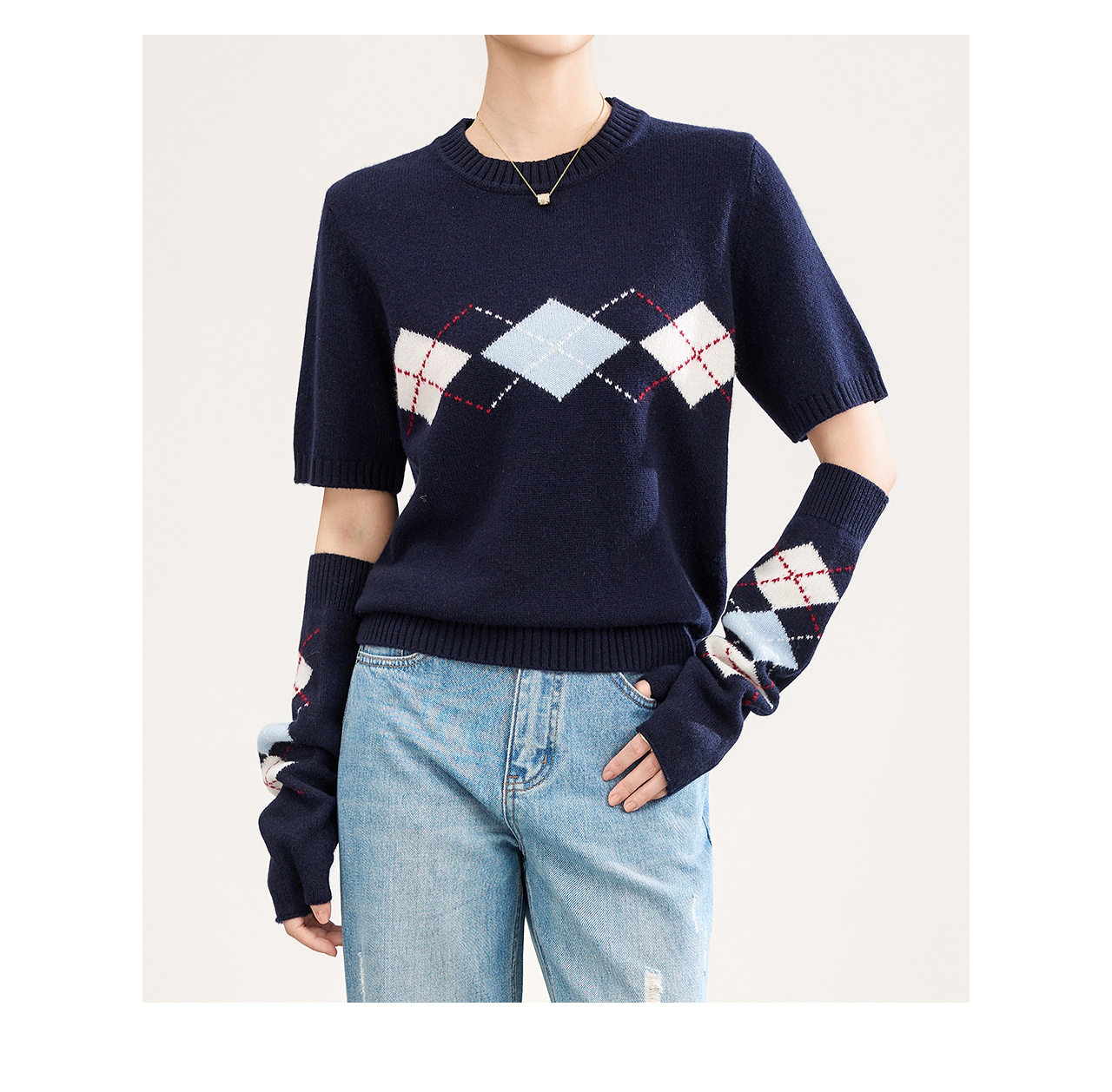 「高货wl」全新升级【铂金会员330/天猫439/差价109】(05134)洛诗琳四平密织菱格提花羊毛上衣2026春季新款复古慵懒袖套短袖针织上衣