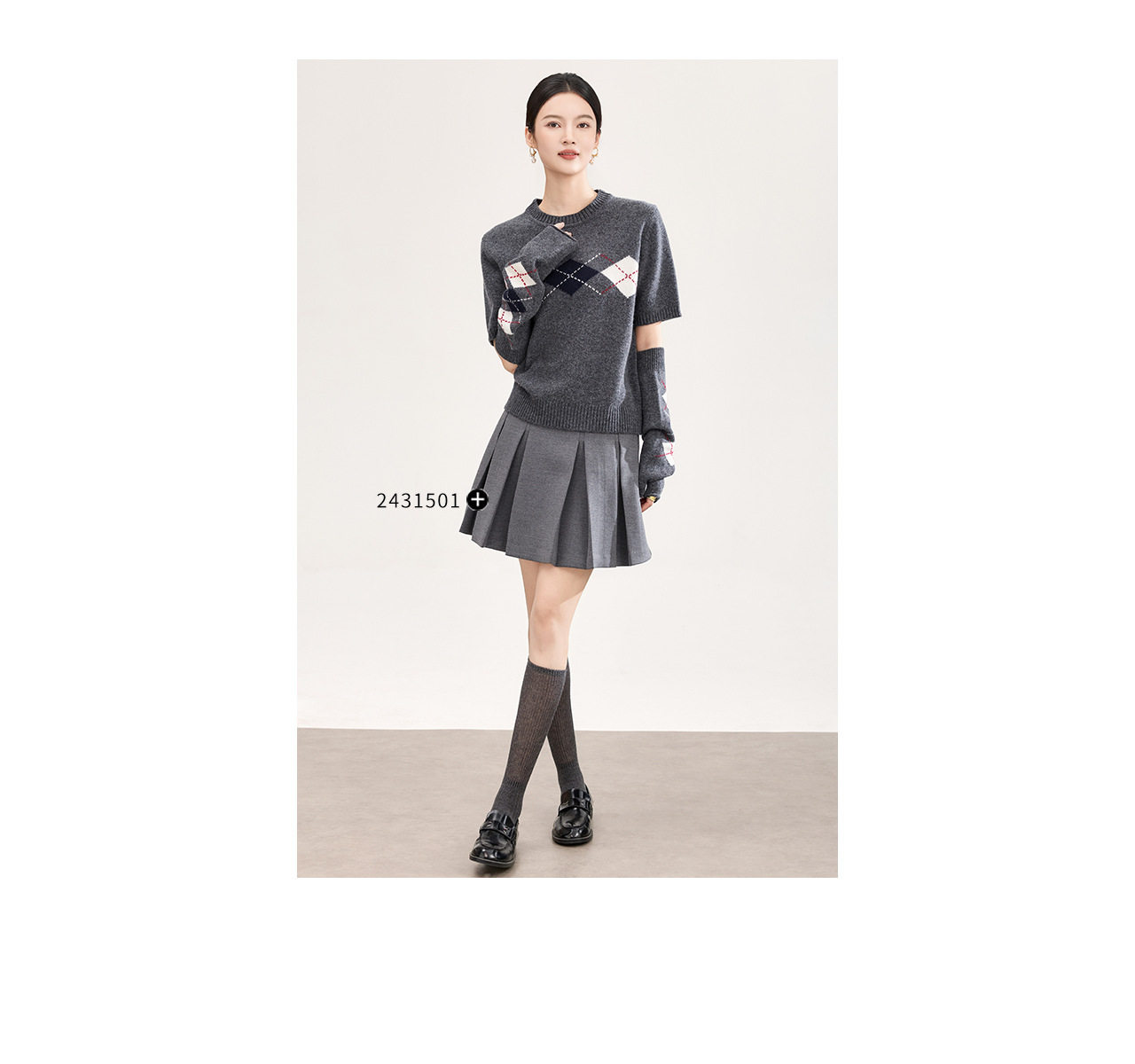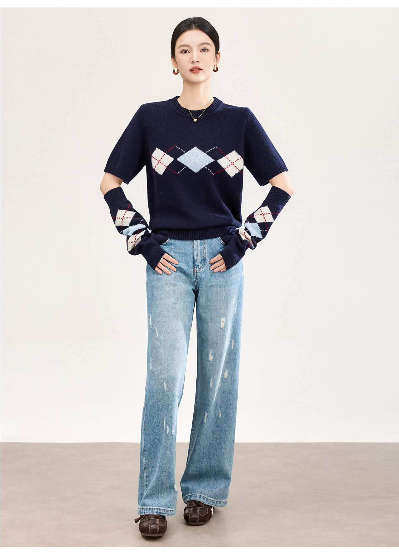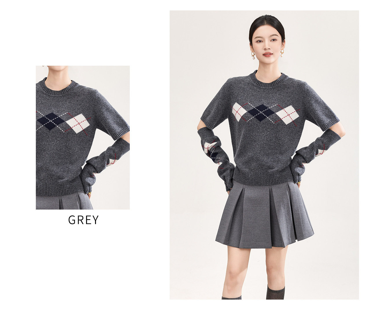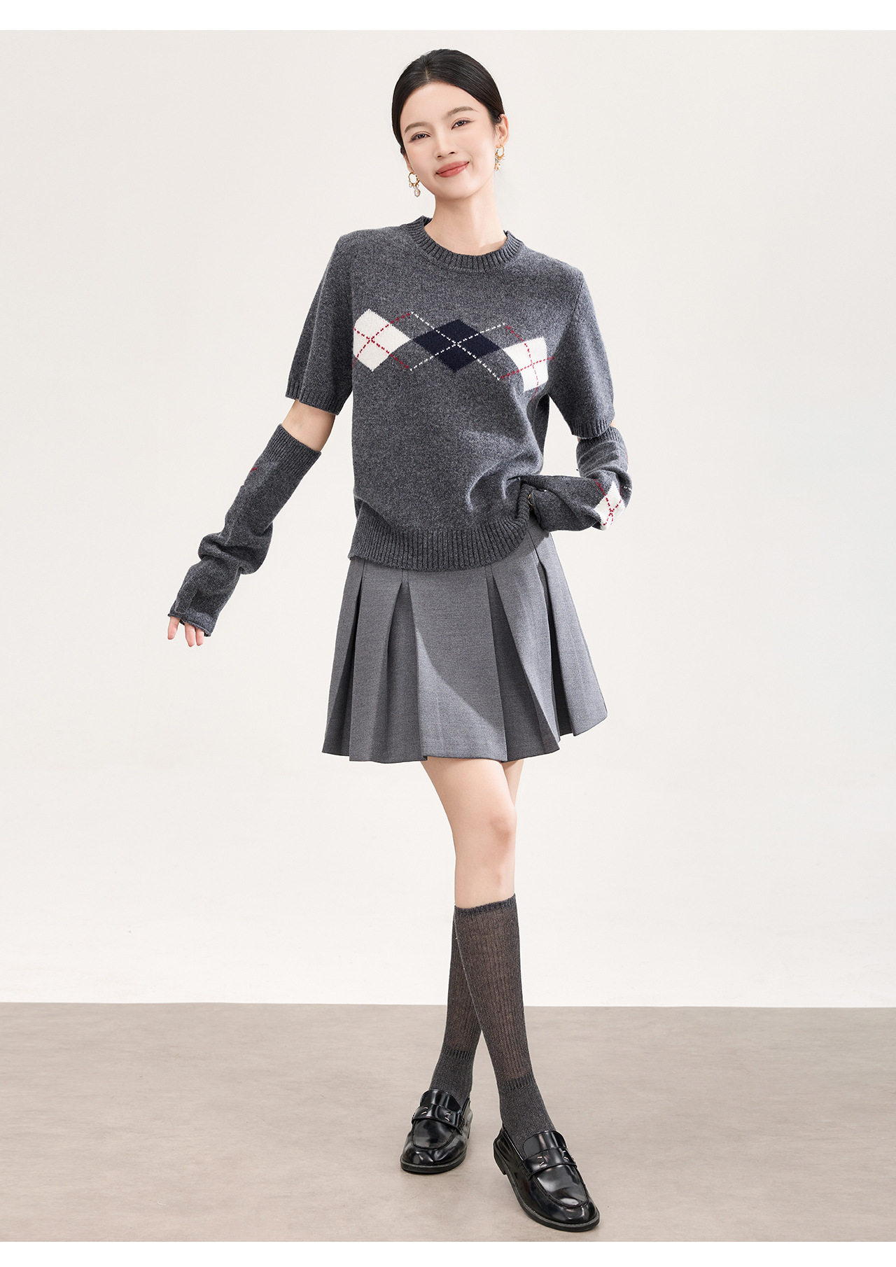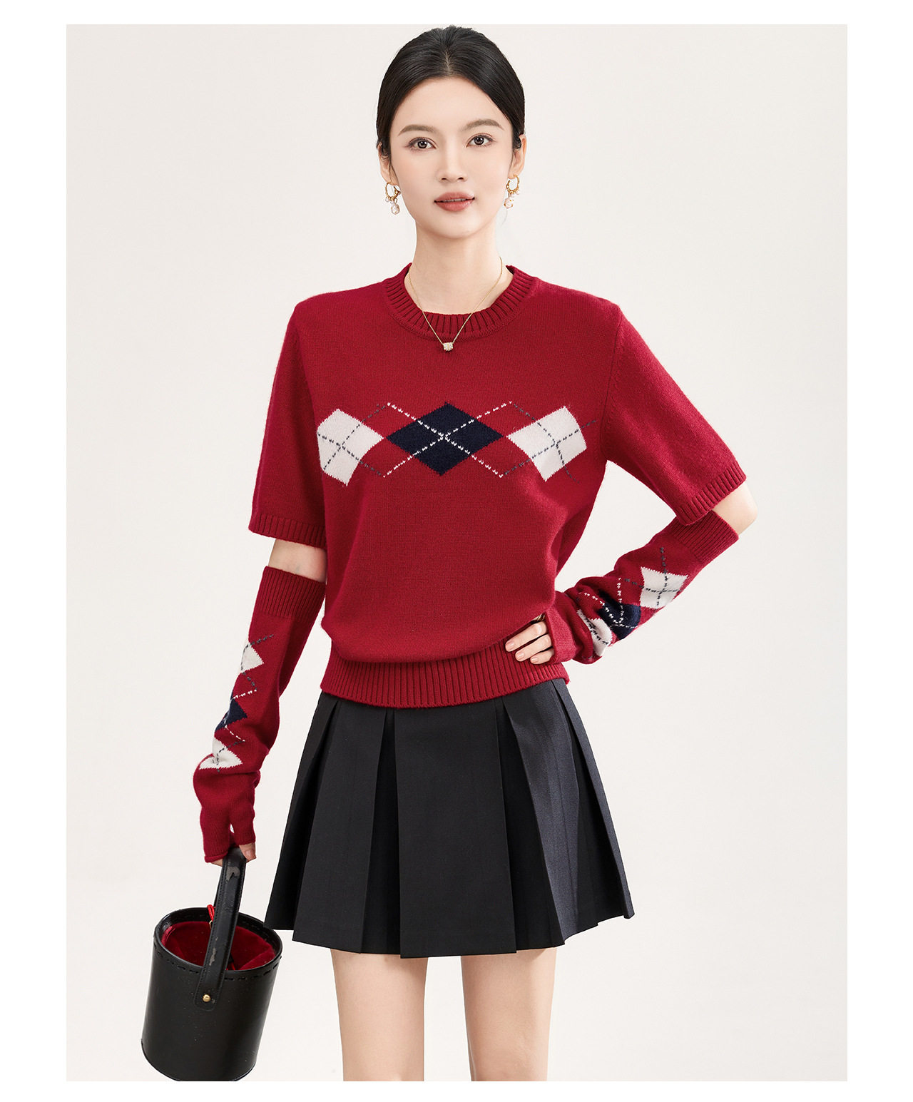 「高货wl」全新升级【铂金会员330/天猫439/差价109】(05134)洛诗琳四平密织菱格提花羊毛上衣2026春季新款复古慵懒袖套短袖针织上衣