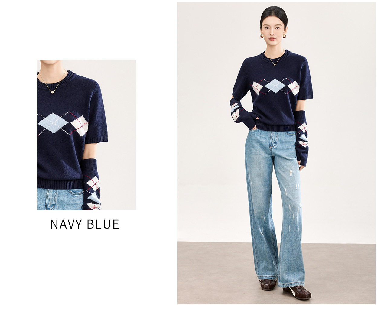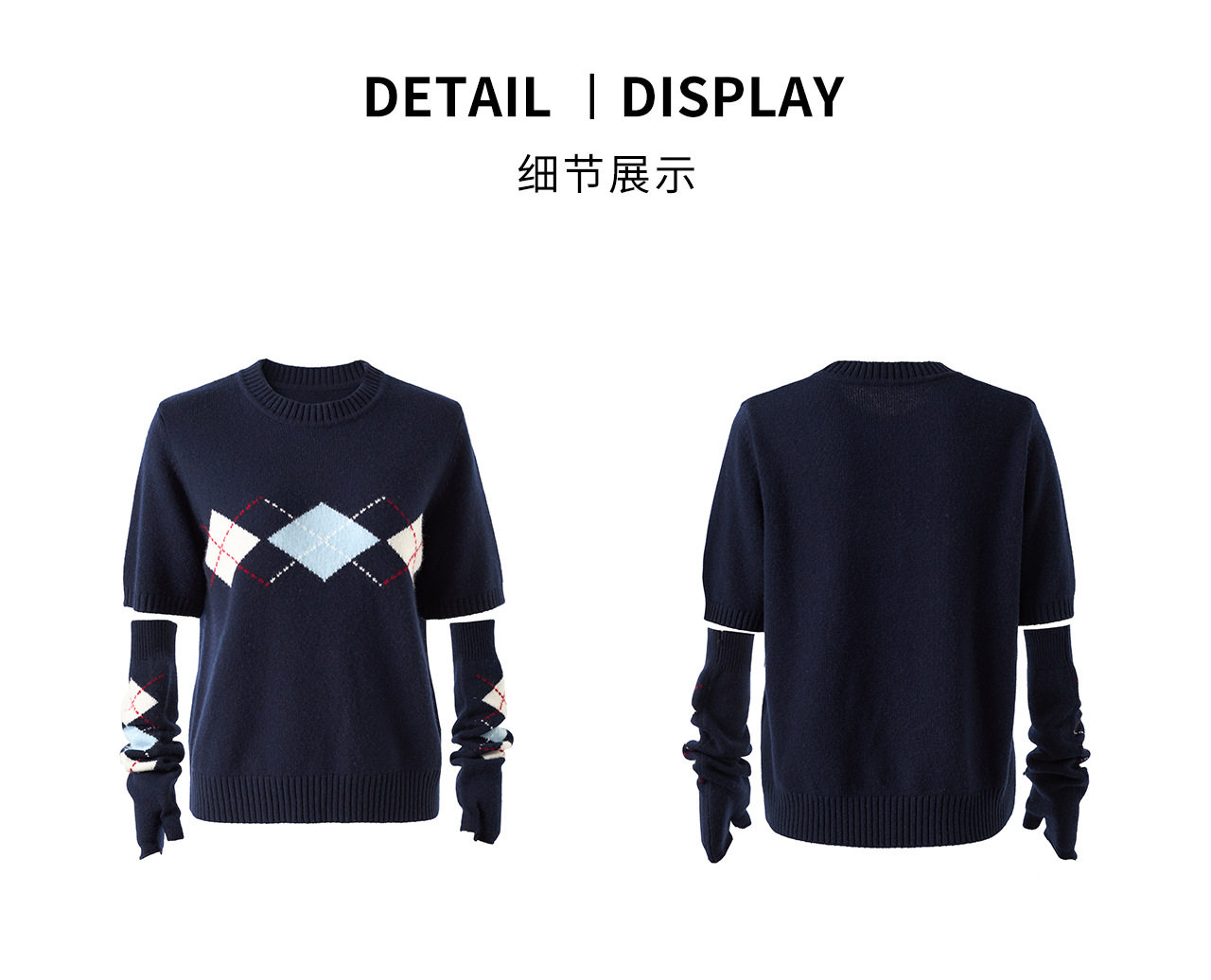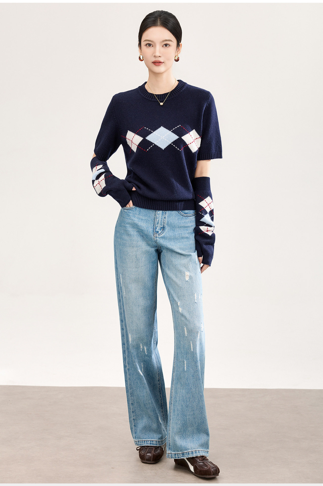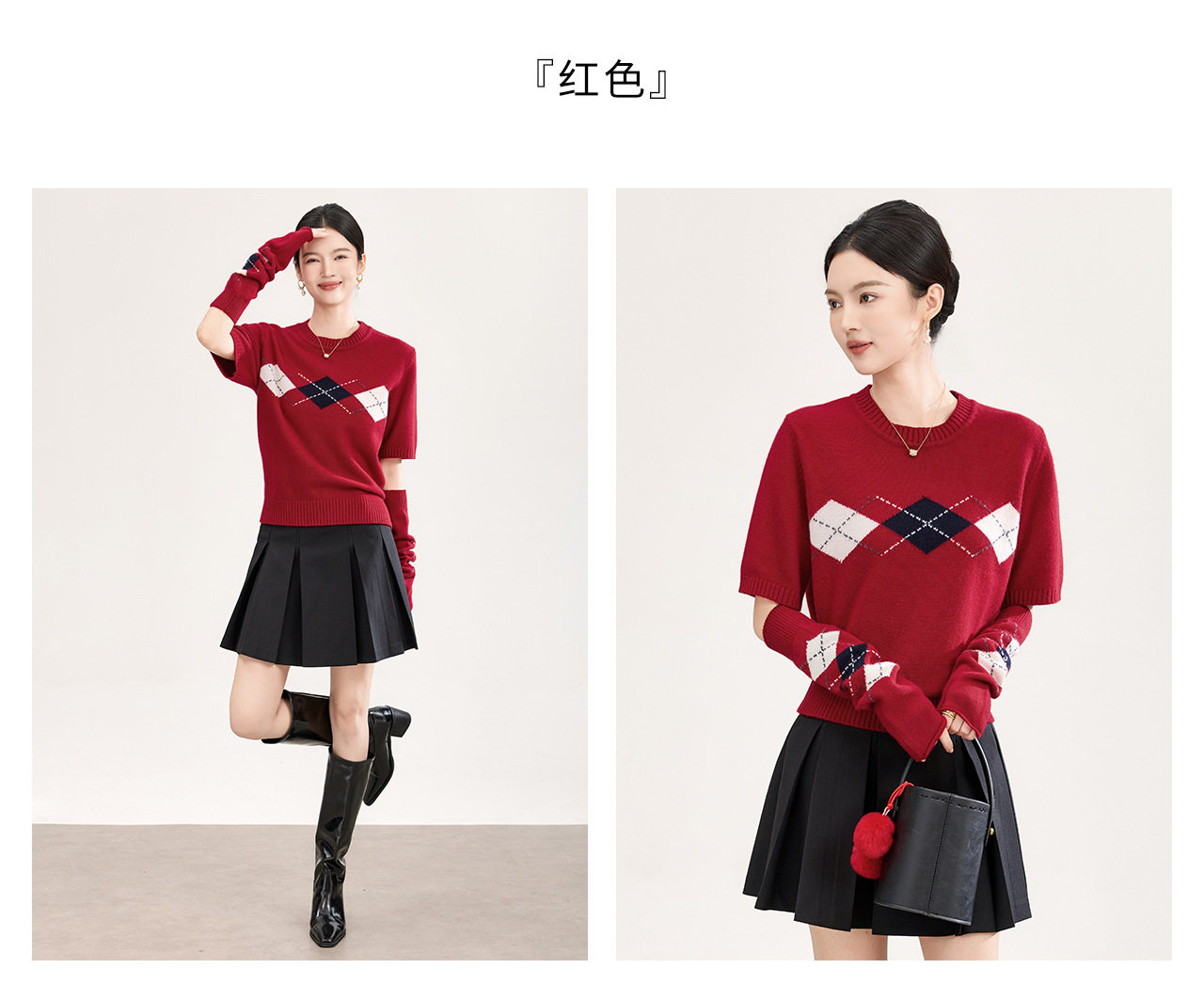 「高货wl」全新升级【铂金会员330/天猫439/差价109】(05134)洛诗琳四平密织菱格提花羊毛上衣2026春季新款复古慵懒袖套短袖针织上衣
