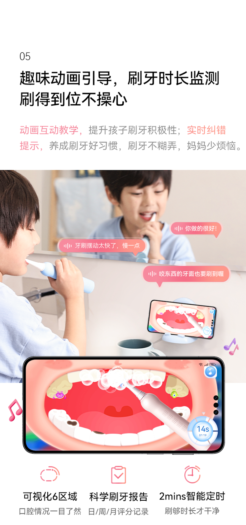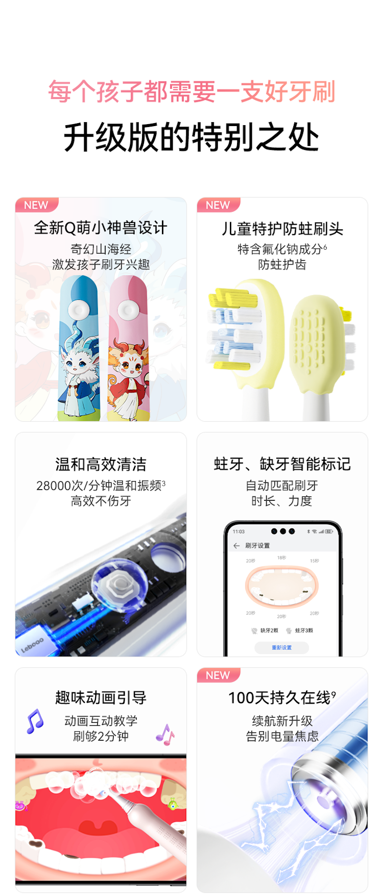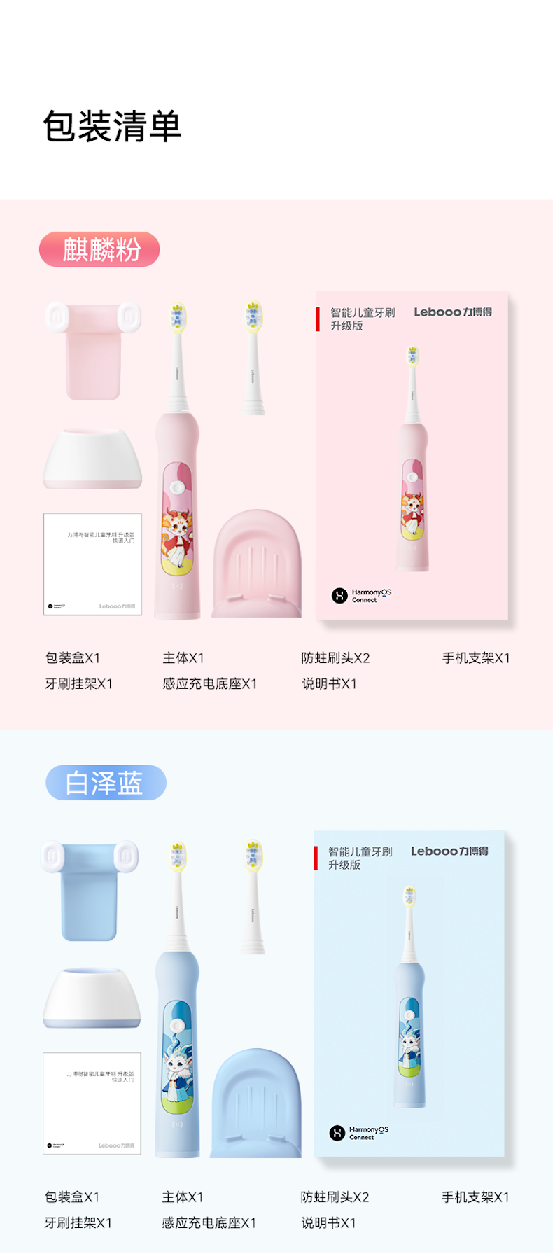 鸿蒙智选力博得智能儿童电动牙刷 升级款小神兽 食品接触级材质宝宝牙刷礼物3-12岁 白泽蓝 儿童节礼物