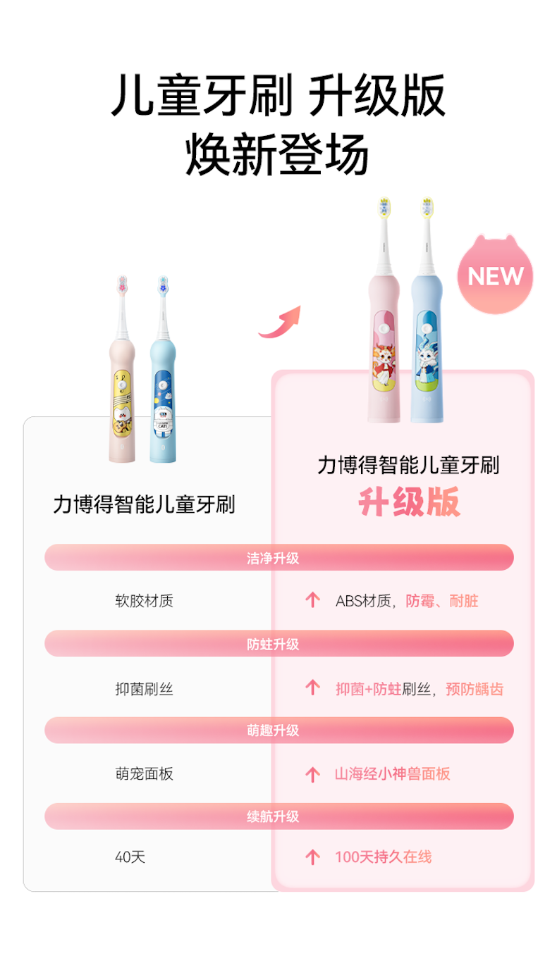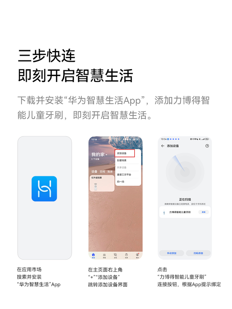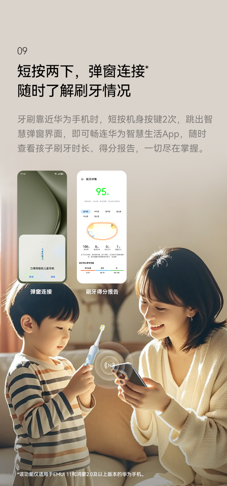 鸿蒙智选力博得智能儿童电动牙刷 升级款小神兽 食品接触级材质宝宝牙刷礼物3-12岁 白泽蓝 儿童节礼物