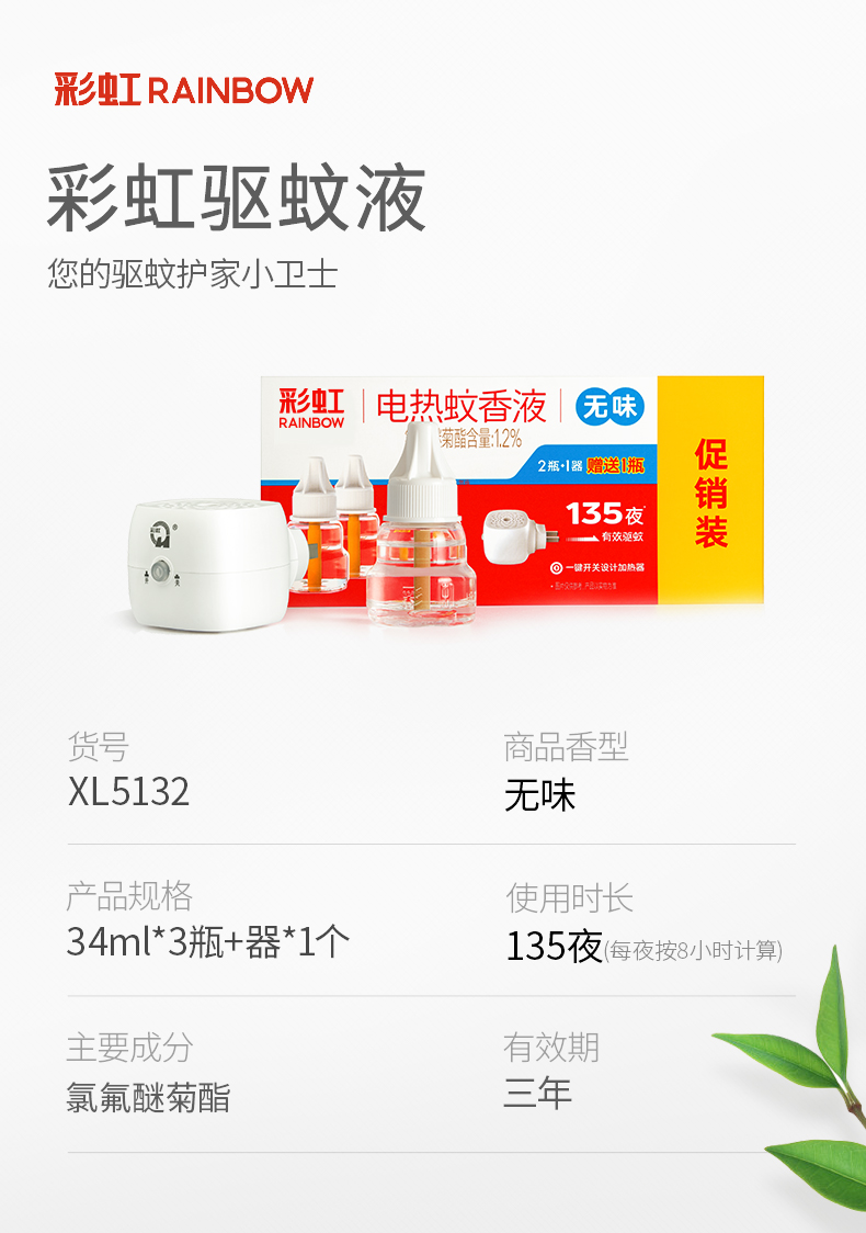 【Rainbow】彩虹蚊香液直插器超值装(3+1)无味 XL5132