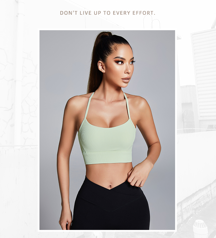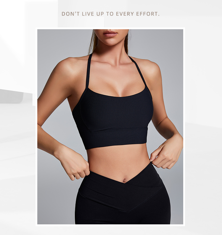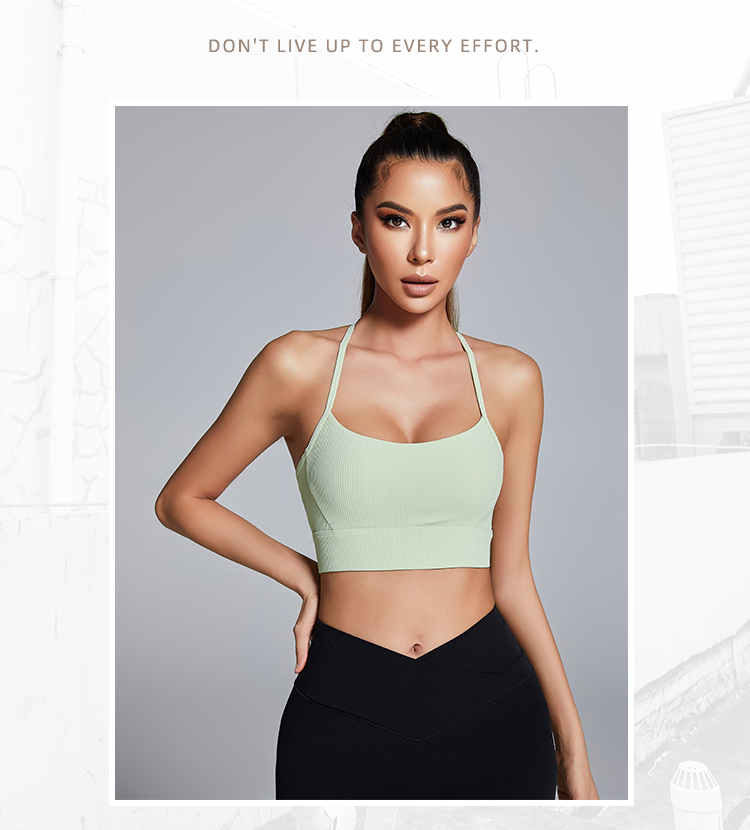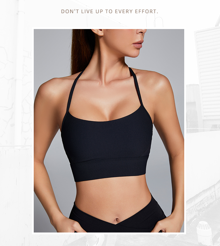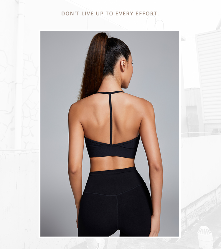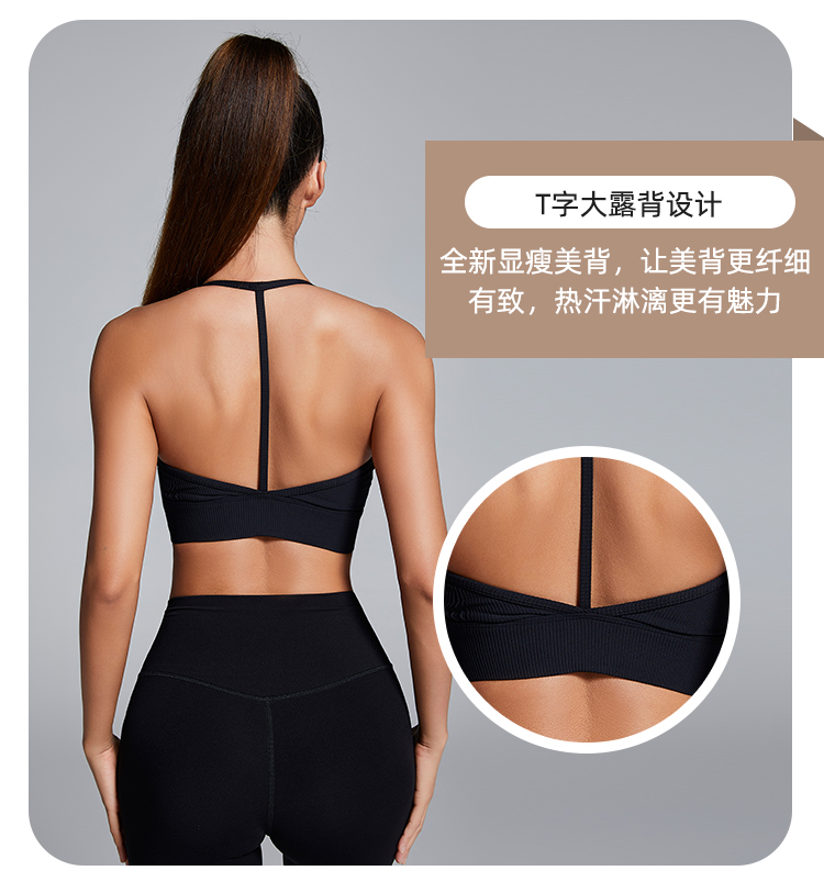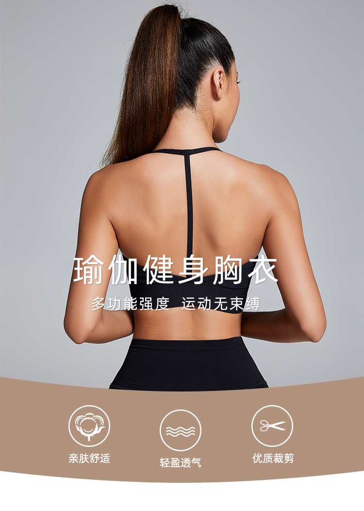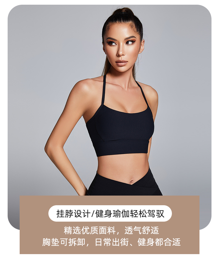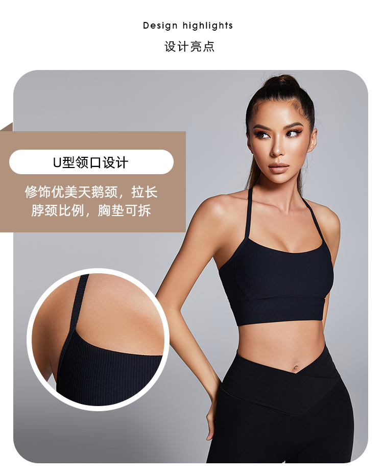 【限时秒】YOGACODE火树银花/防震深U美背透气带胸垫挂脖瑜伽胸围YCDS364