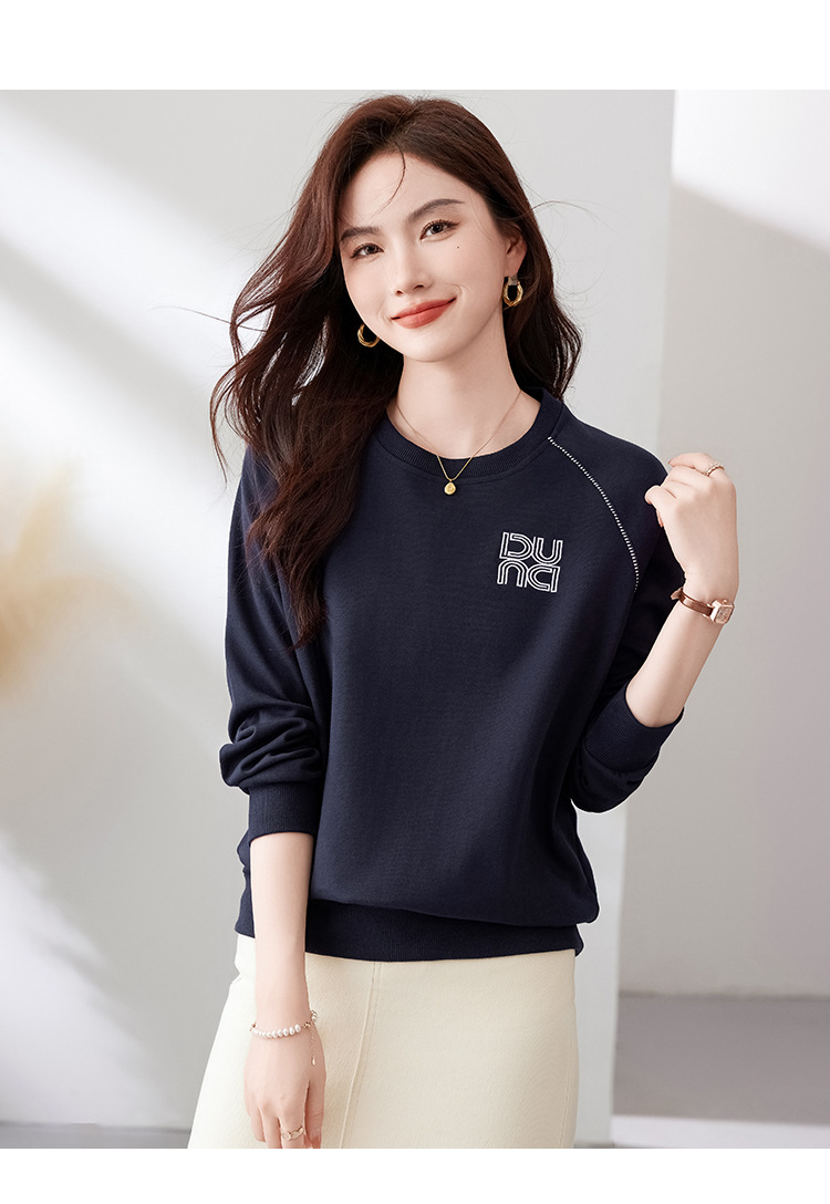 百媚生 圆领卫衣女春秋薄款宽松T恤S82330131