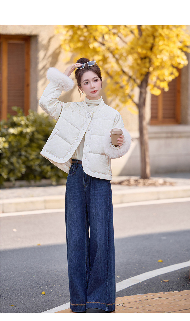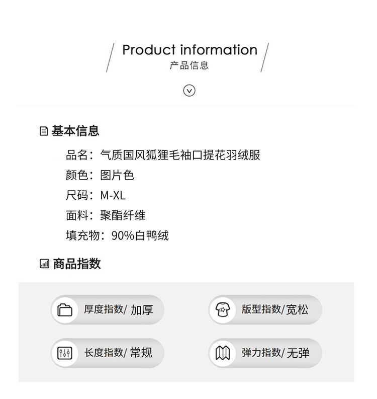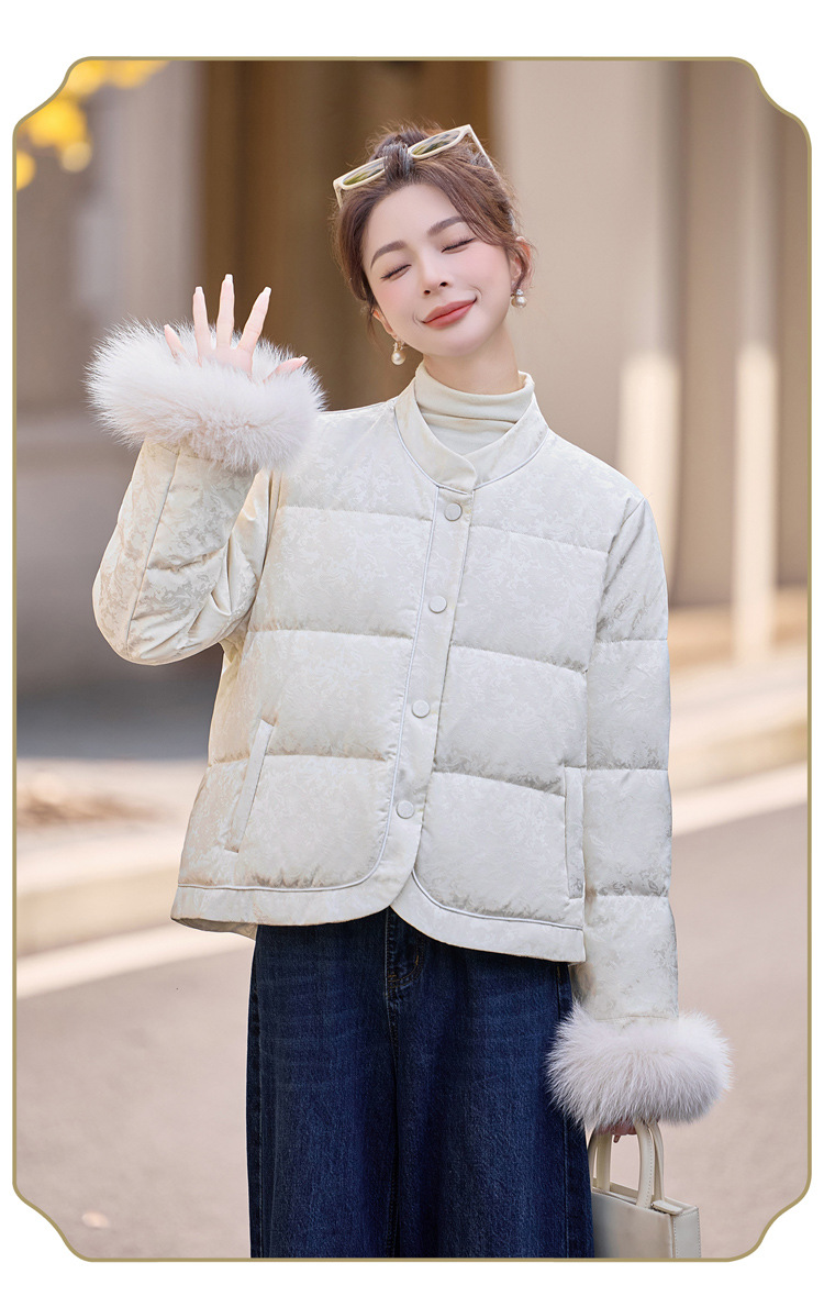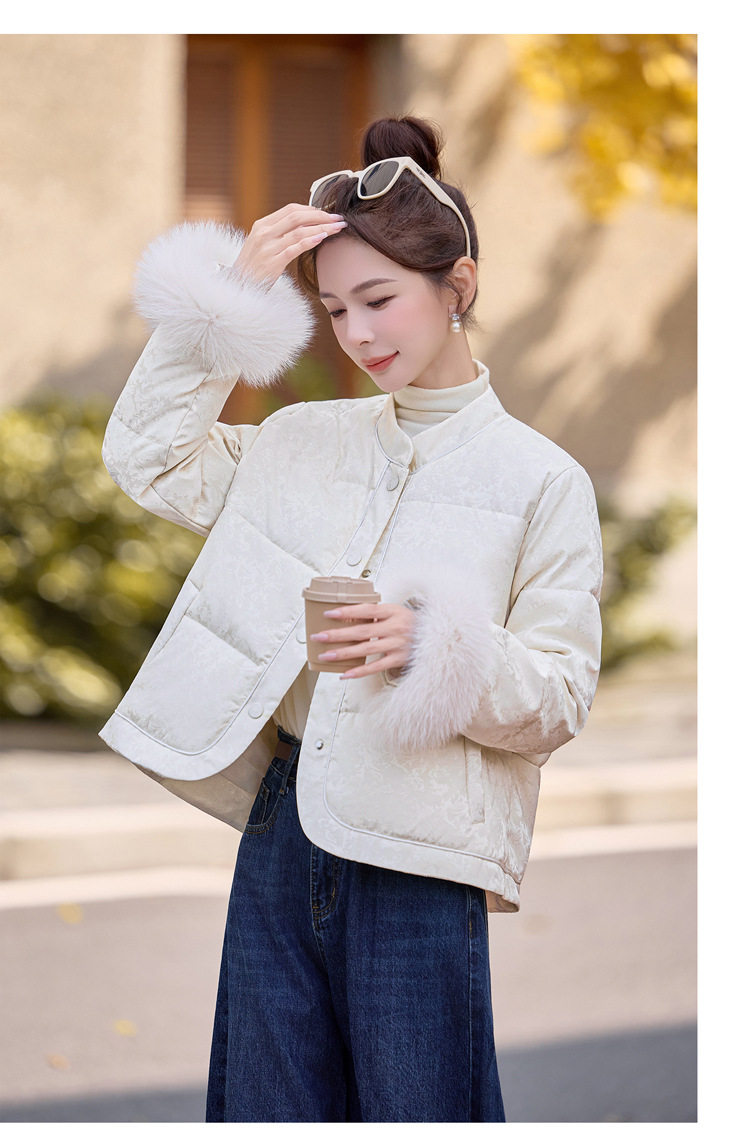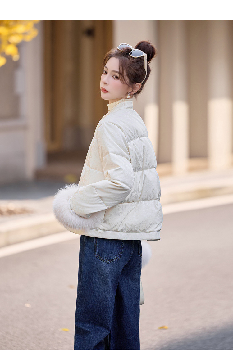 HR YJLY86851中式短款羽绒服提花新中式外套配狐狸毛 商品图4