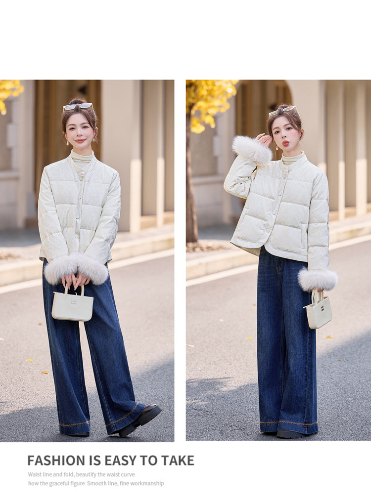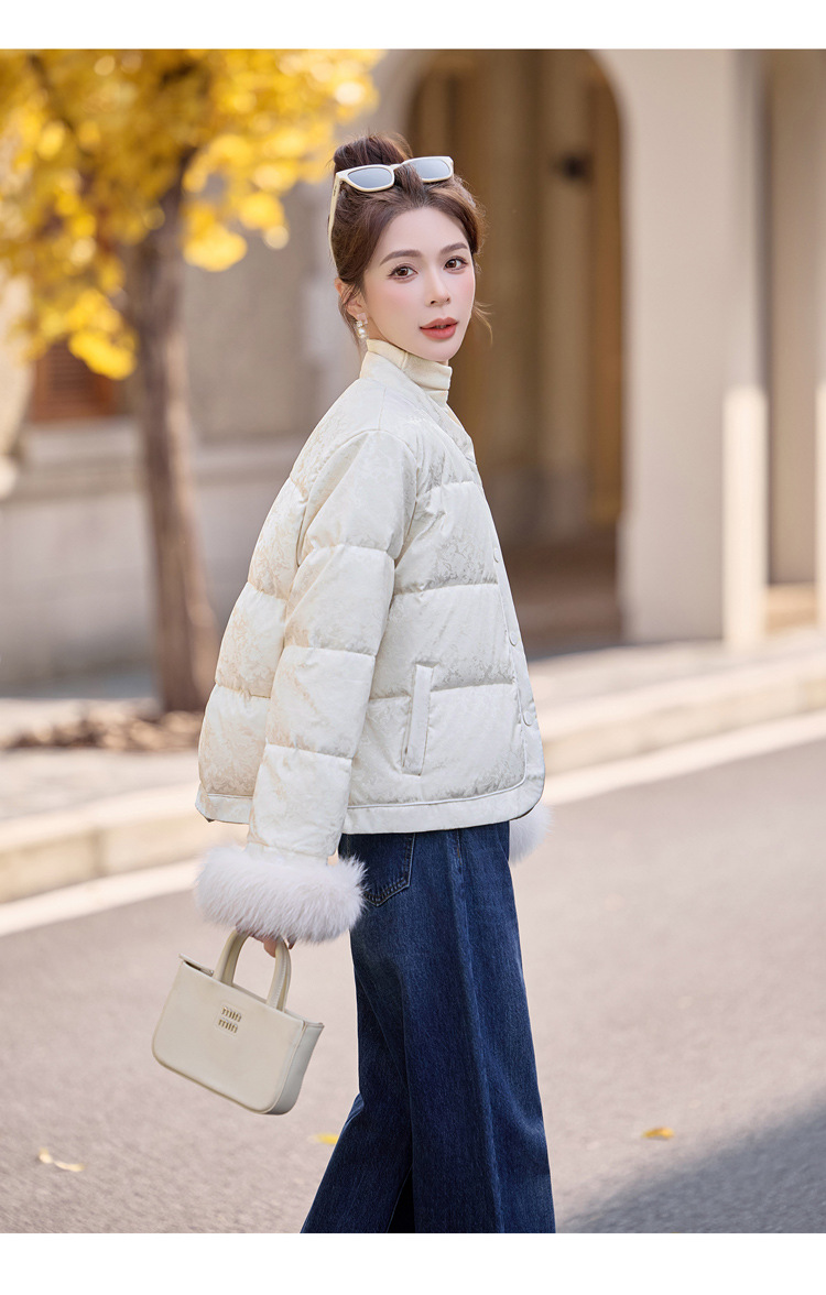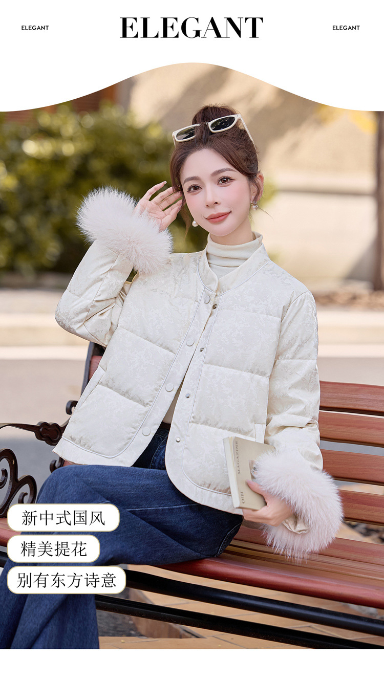 HR YJLY86851中式短款羽绒服提花新中式外套配狐狸毛 商品图0