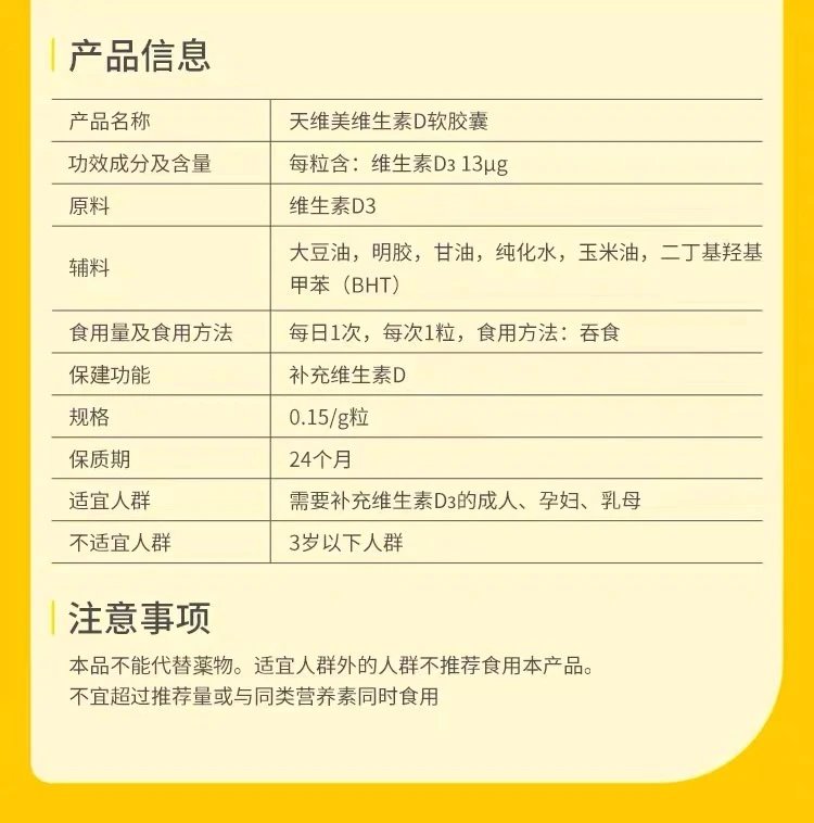 59秒杀️天维美维生素D,每粒含13μg维生素D3迷你胶囊易吞服3岁以上皆宜基地直邮