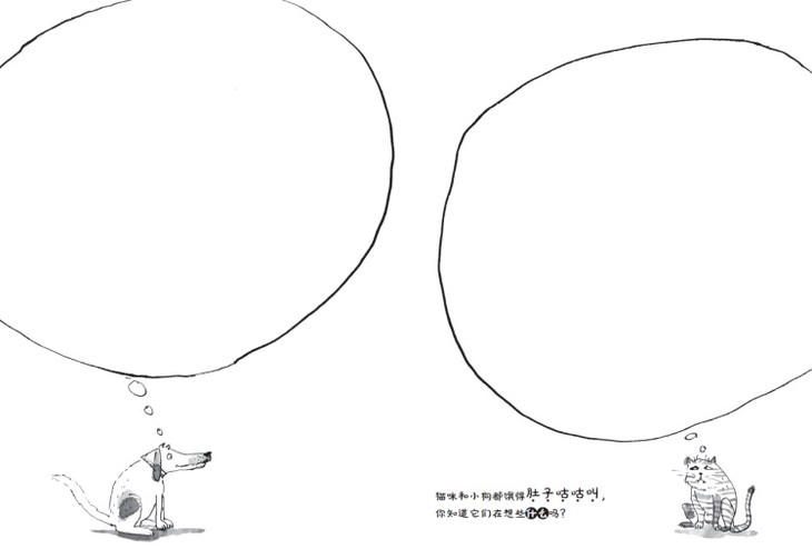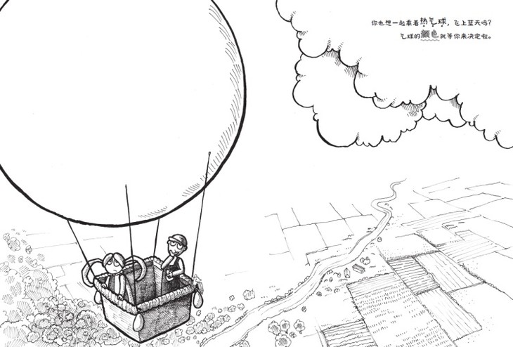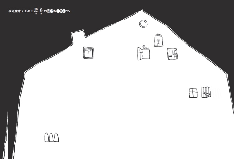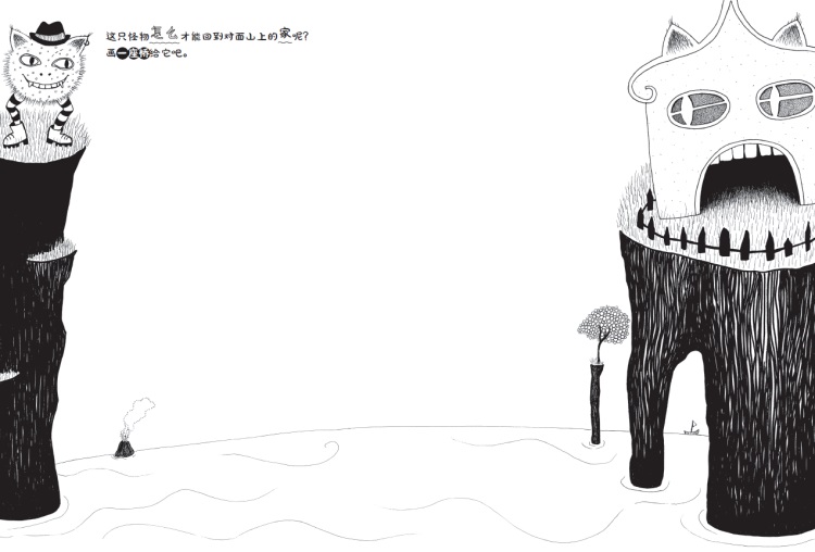 依样画葫芦式的绘画比较容易,但要发挥想象力、有创意地构图绘画就比较难了。我小时候就很喜欢绘画书,对此深有体会,可这也是“很刺激”的一件事。在与学生们讨论时,我们就反复设想:自己若身为一个孩子,面对这样的创意涂鸦书,会有怎样的反应呢?孩子们会发现,这些图画设计并不局限于“把图画完”,更重要的是如何发展和延续图片的思路。这样引导孩子们接着画几笔看似简单,但我们不可低估它的能量。那些看似最简单的几笔补画,却有可能展现出令人惊讶的创意,能唤起观赏者极大的共鸣。