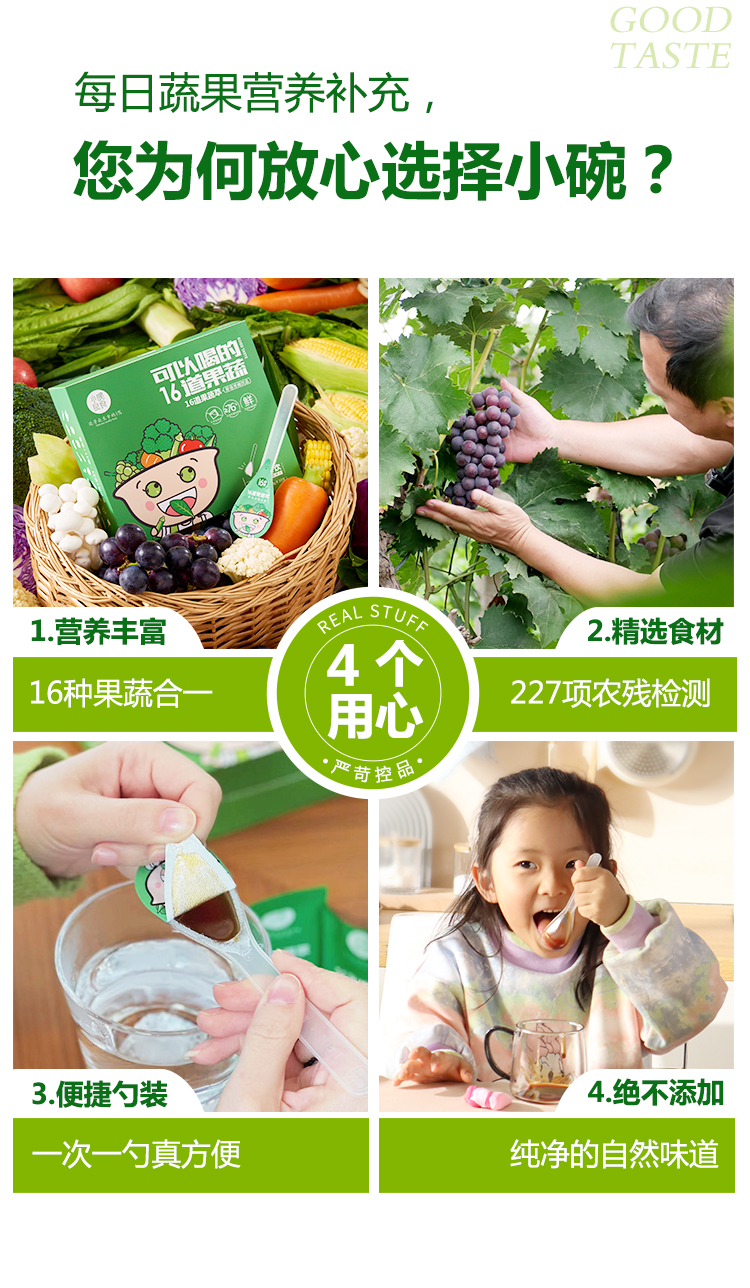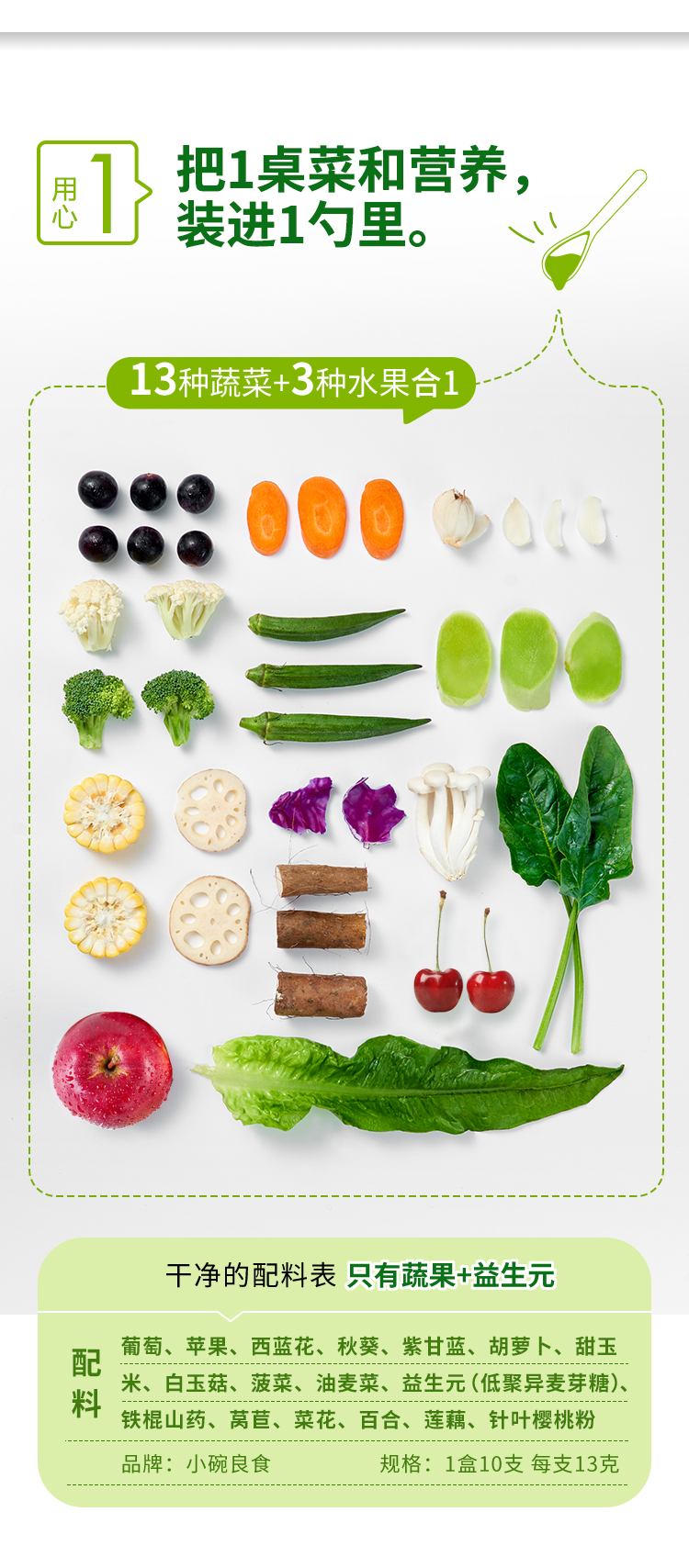 16种果蔬浓缩汁 | 小碗良食果蔬萃小勺饮 孩子挑食不爱吃菜补充膳食纤维 冲饮 130g/盒(10支)