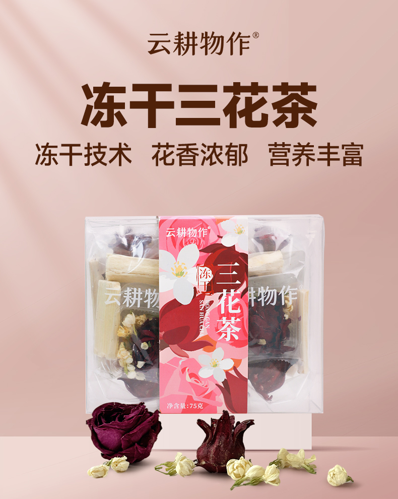 冻干三花茶 玫瑰茉莉洛神三花茶(15g*5包/盒)
