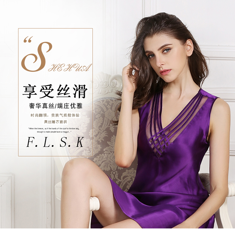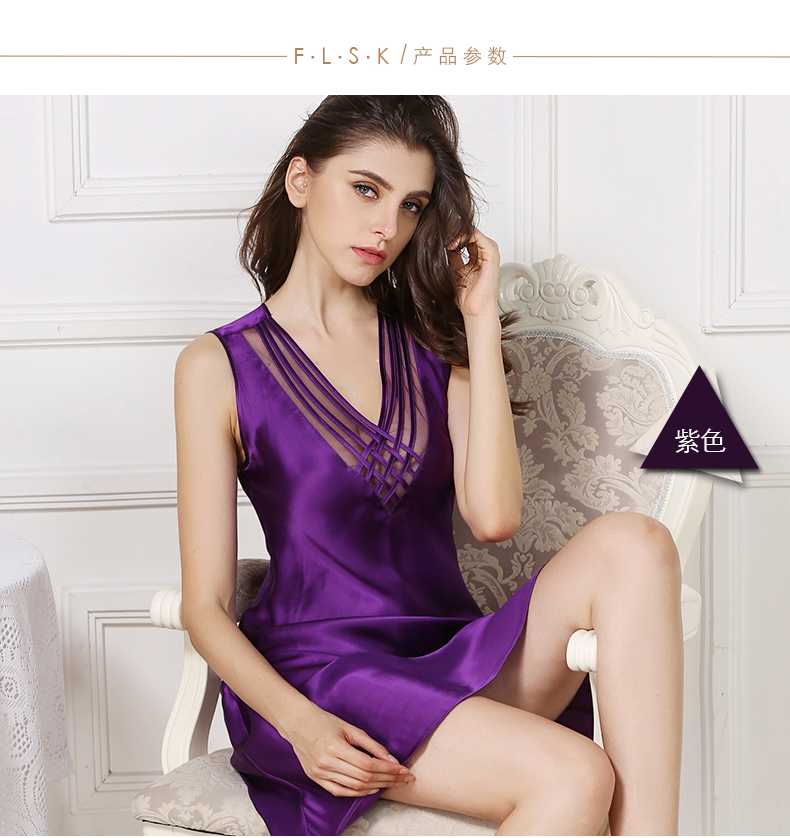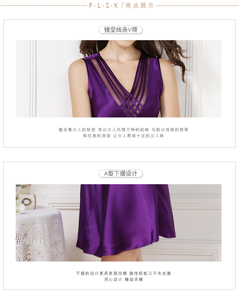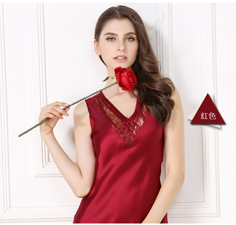 SK-S82009真丝睡衣夏季薄款女士桑蚕丝睡裙性感无袖打底衬裙 S82009