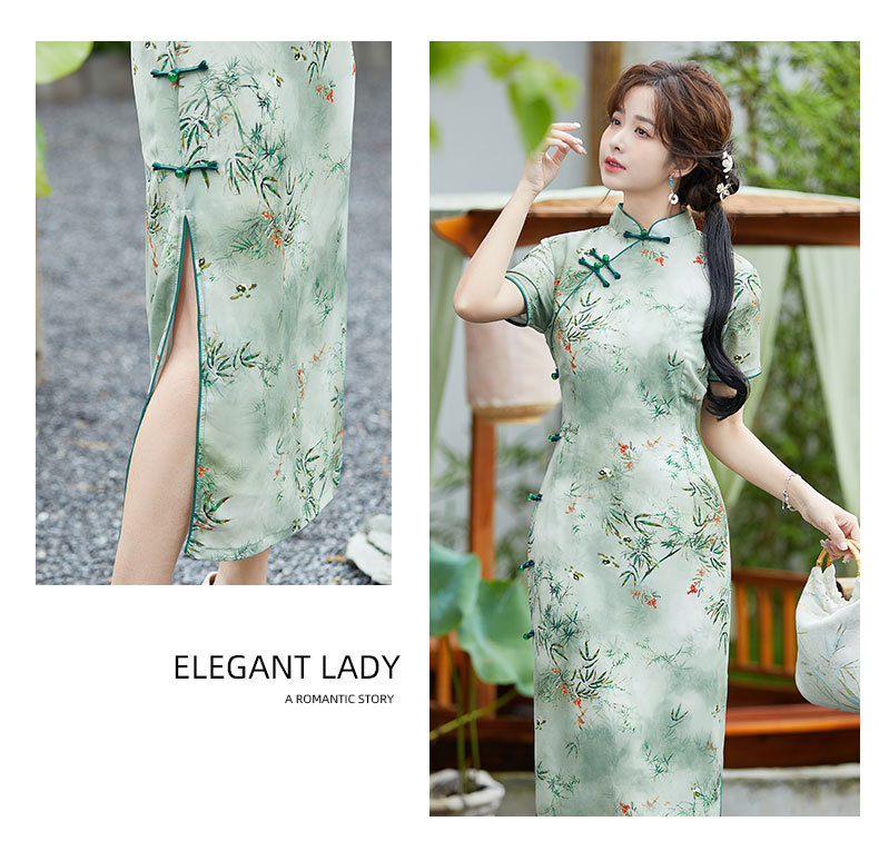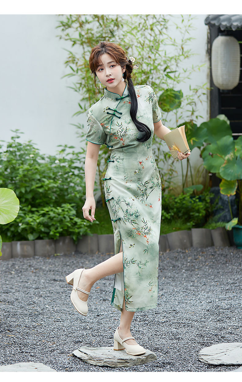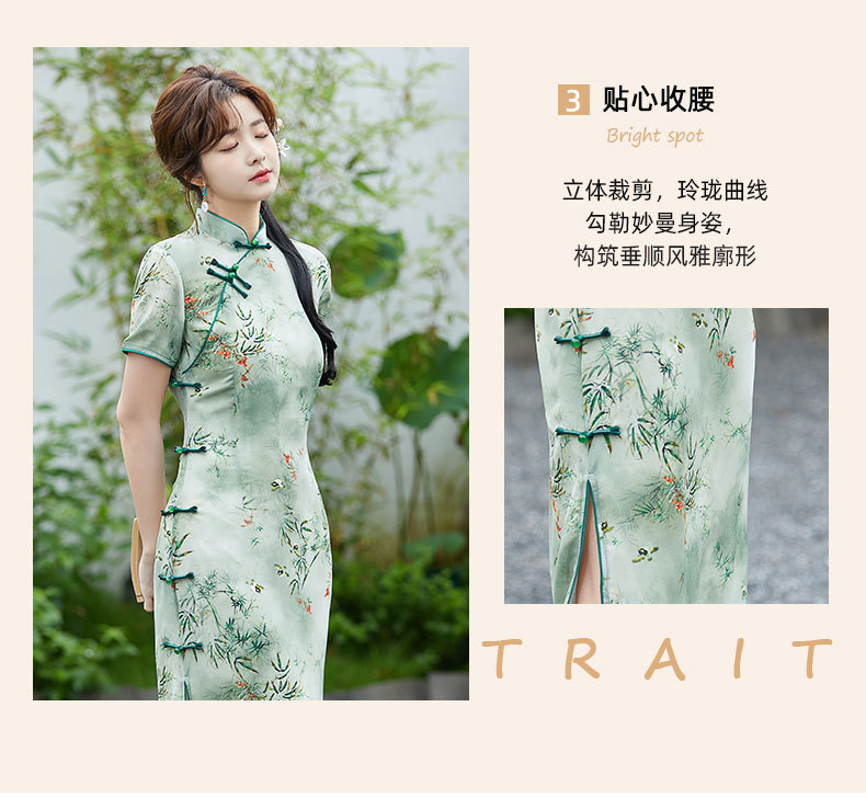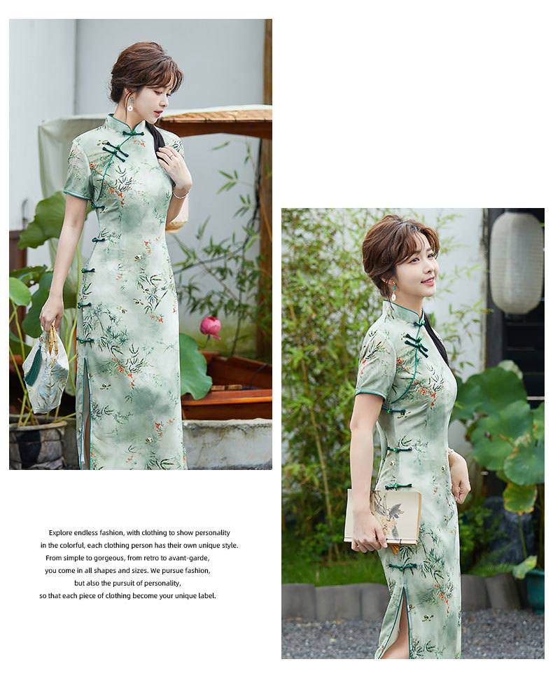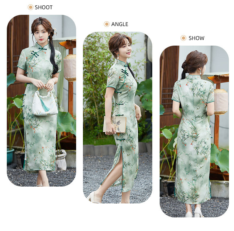 SYK-881新款香港女装旗袍年轻款妈妈旗袍三分袖女复古修身礼服旗袍