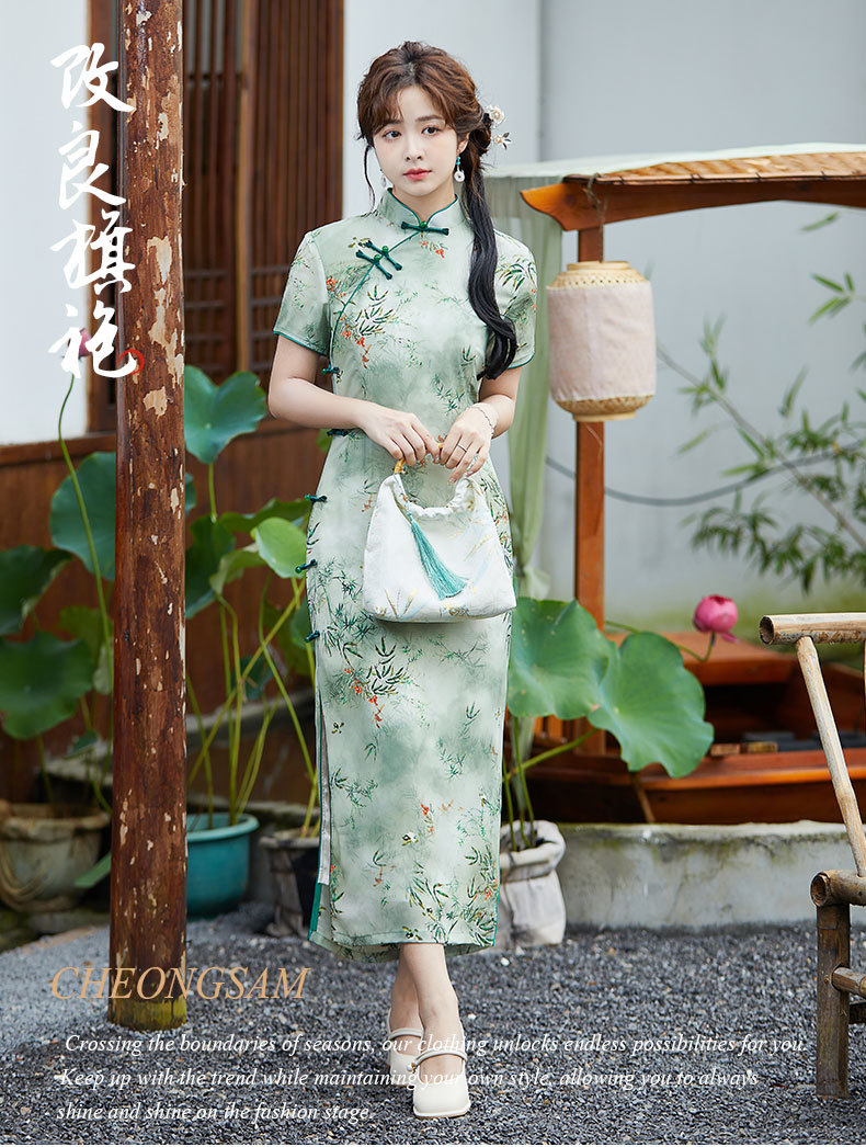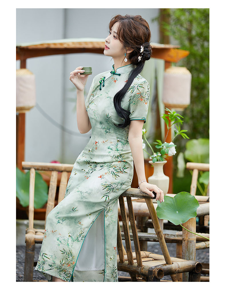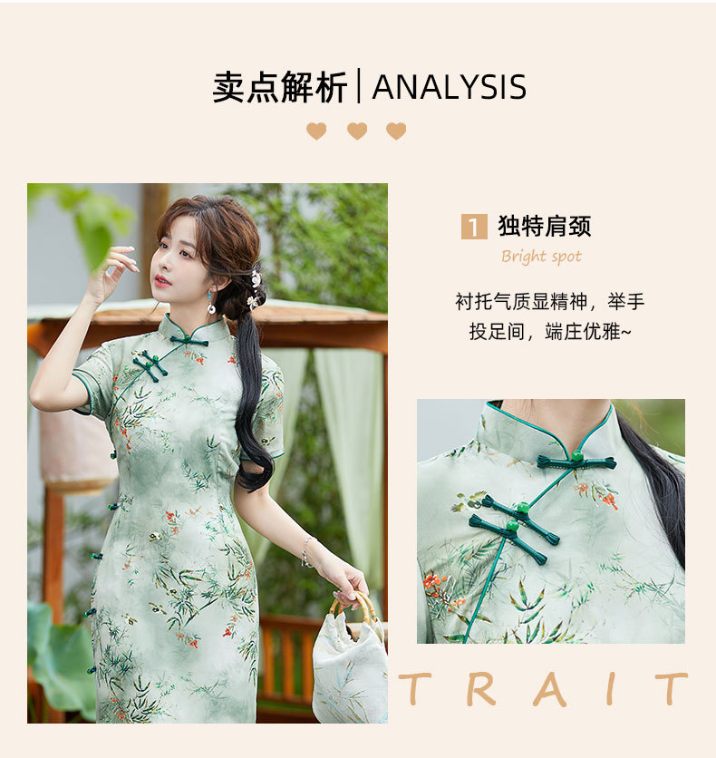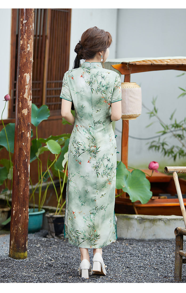 SYK-881新款香港女装旗袍年轻款妈妈旗袍三分袖女复古修身礼服旗袍