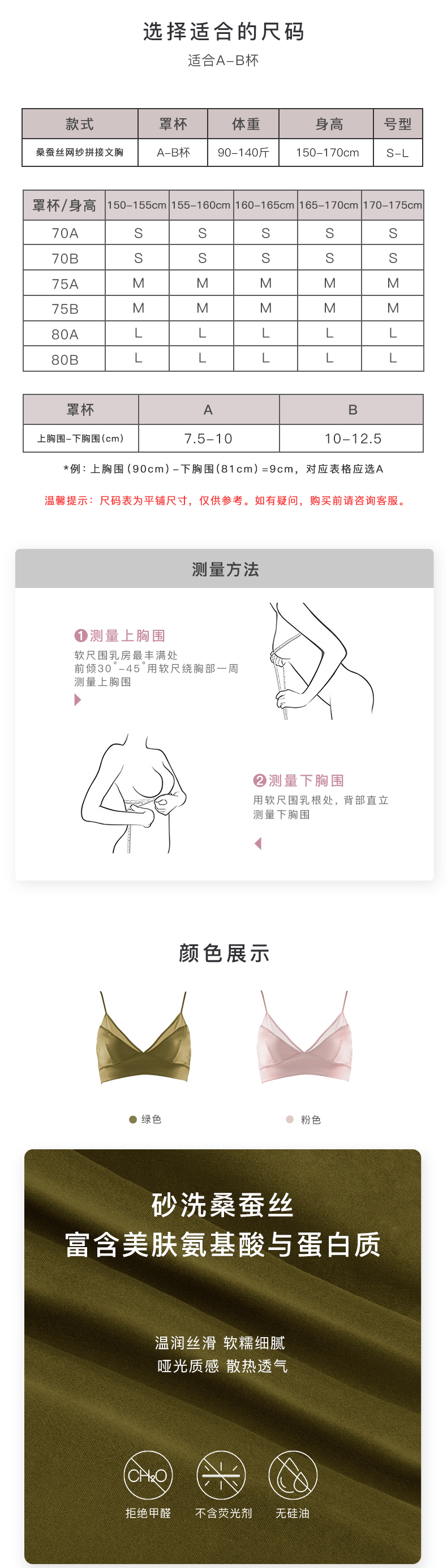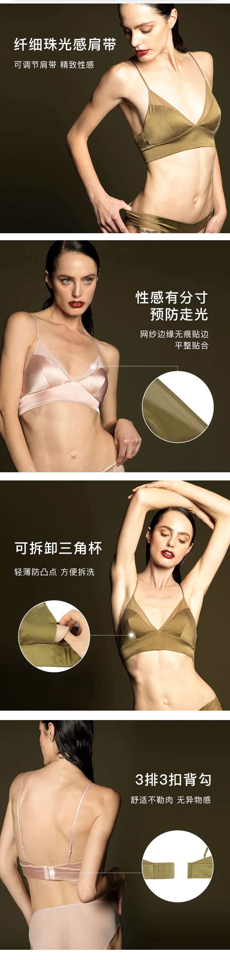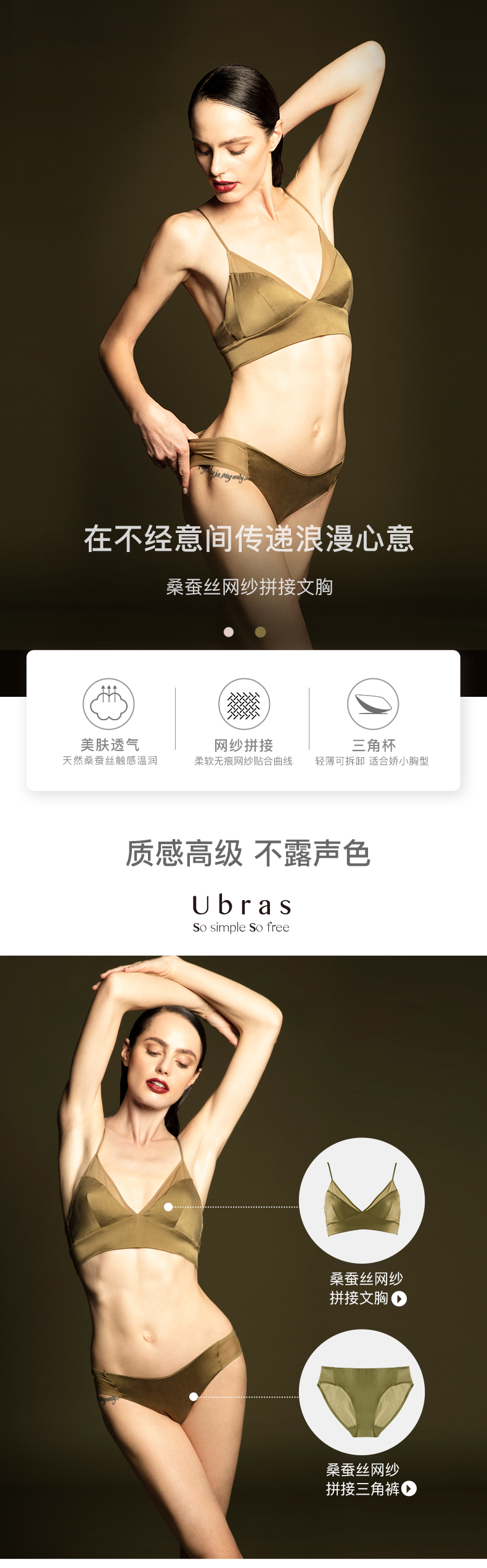 Ubras桑蚕丝网纱拼接文胸法式三角杯内衣女无钢圈简洁性感胸罩