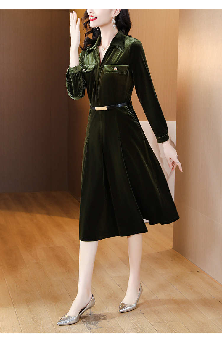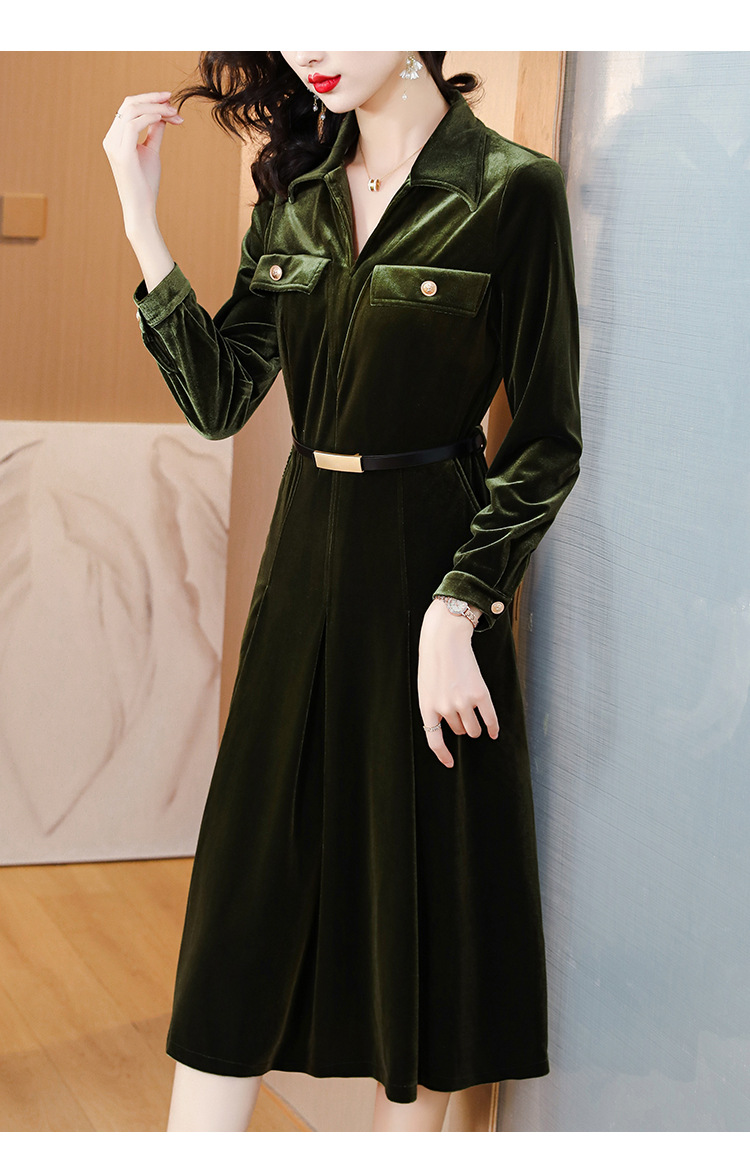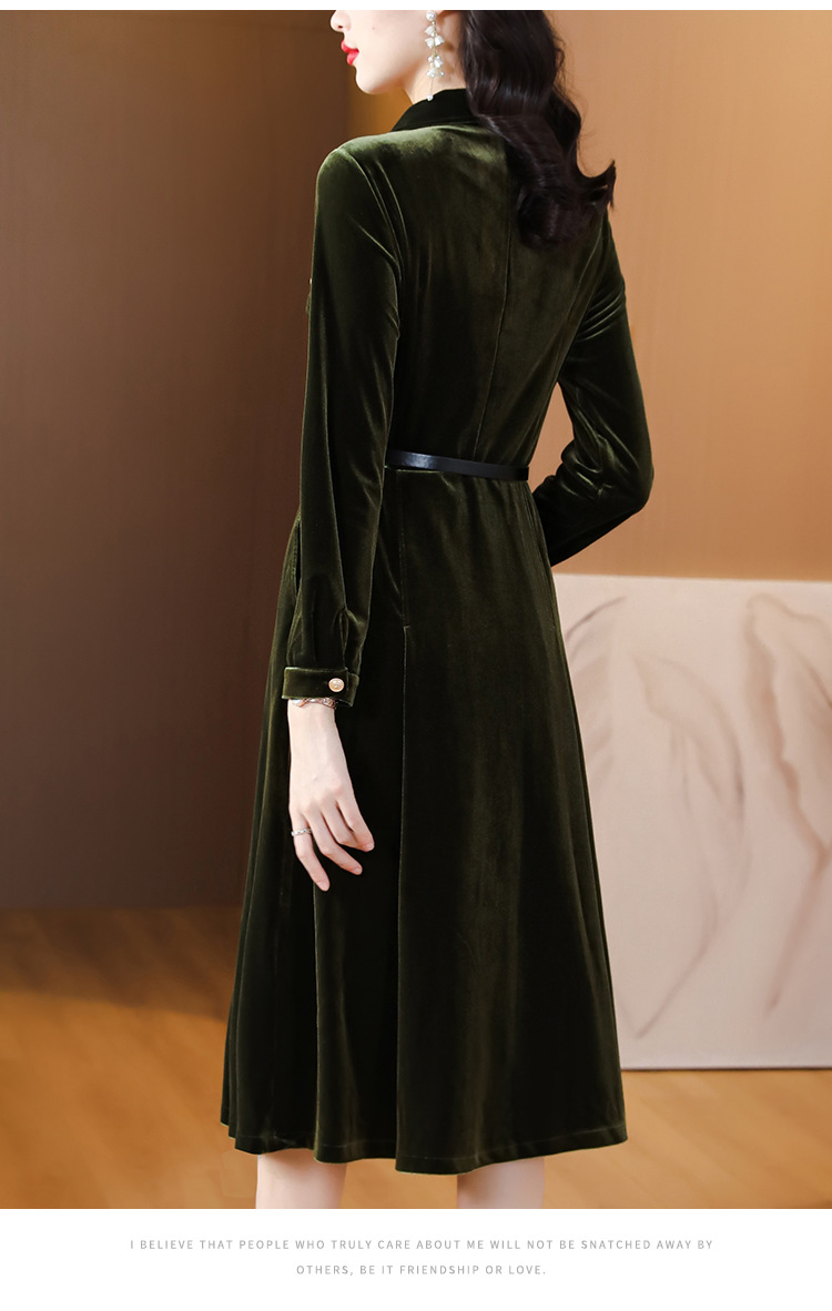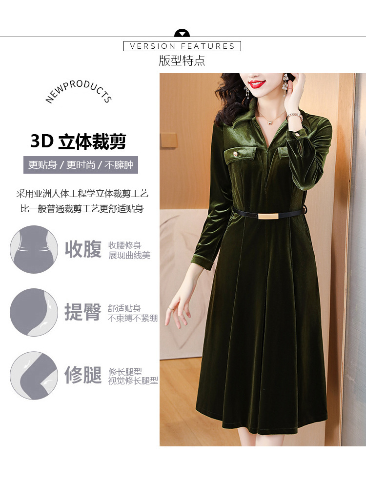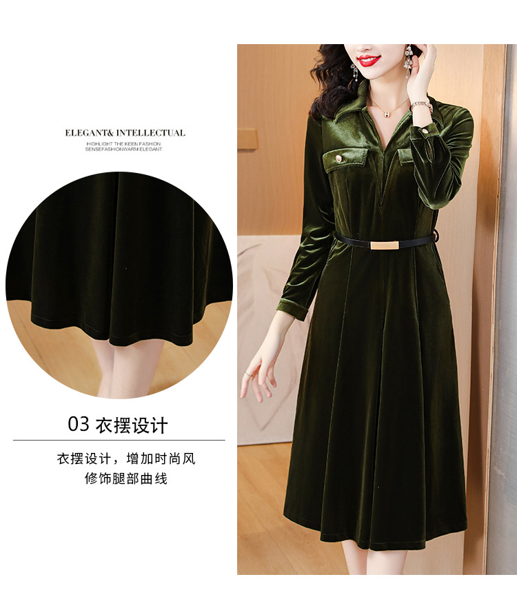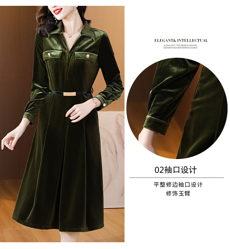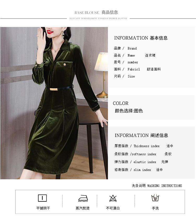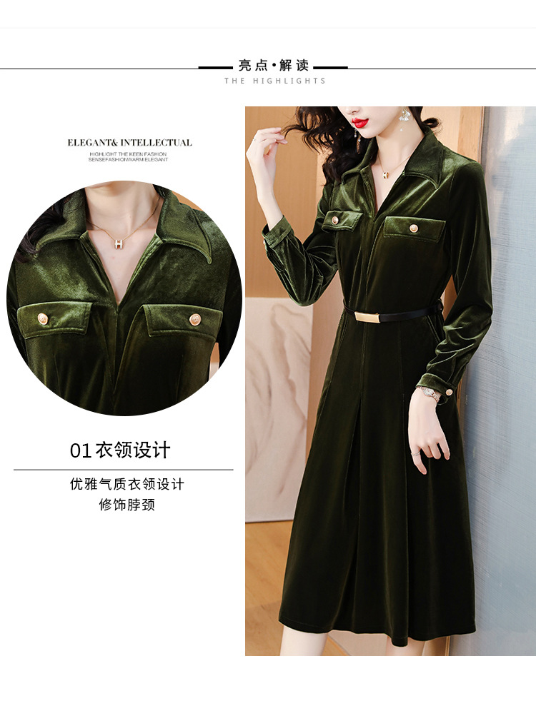 A3170丝绒连衣裙女2024秋季新款长袖小个子收腰显身材港味复古洋气长裙
