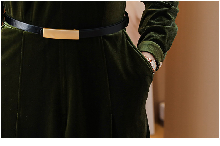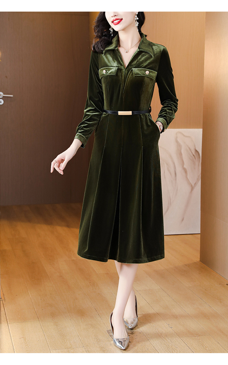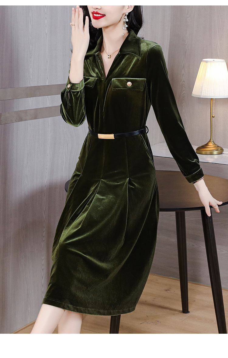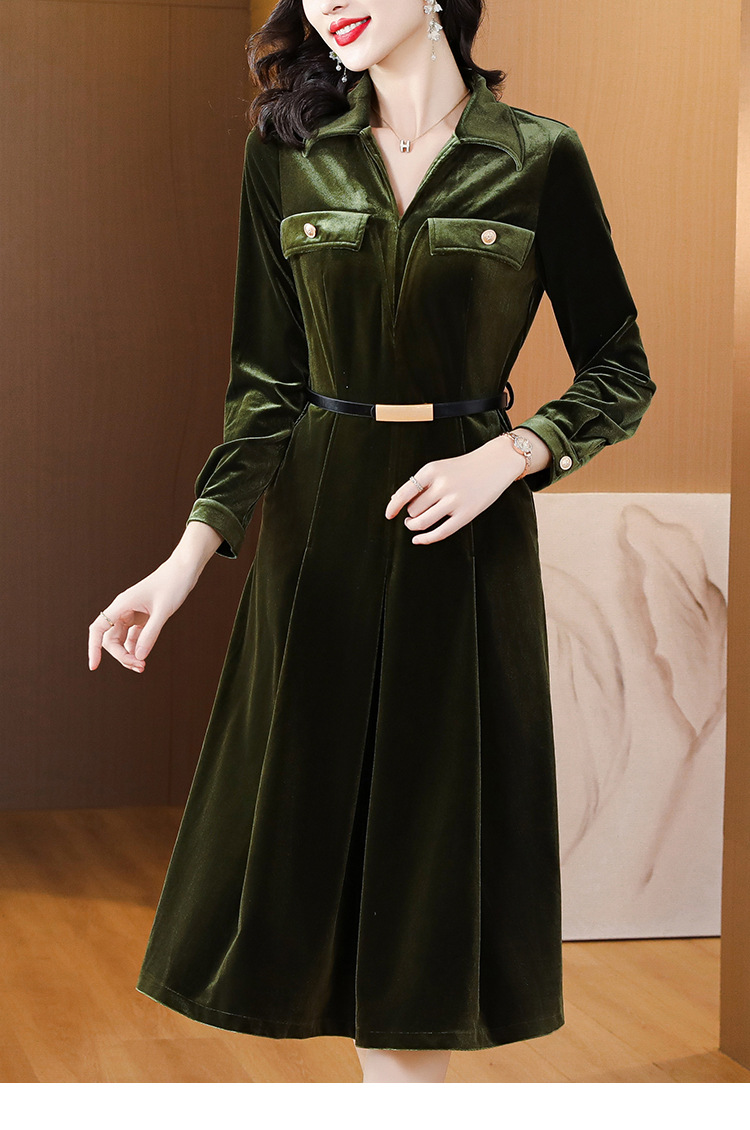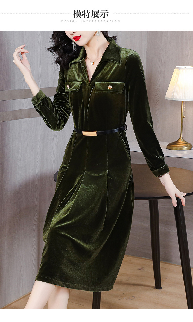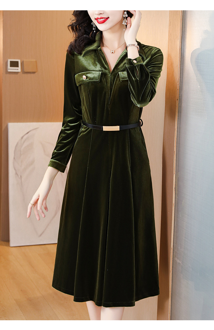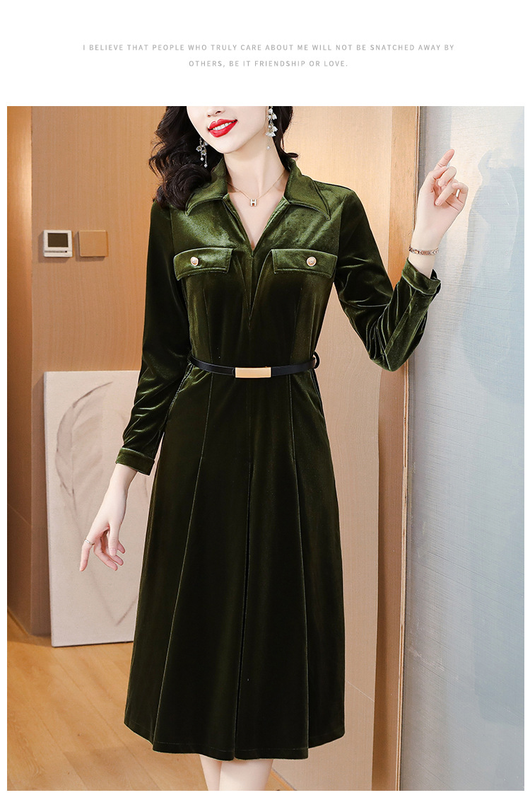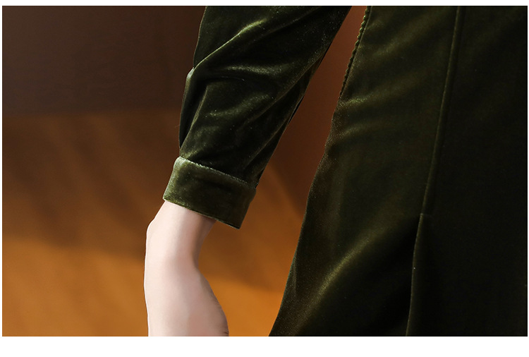 A3170丝绒连衣裙女2024秋季新款长袖小个子收腰显身材港味复古洋气长裙