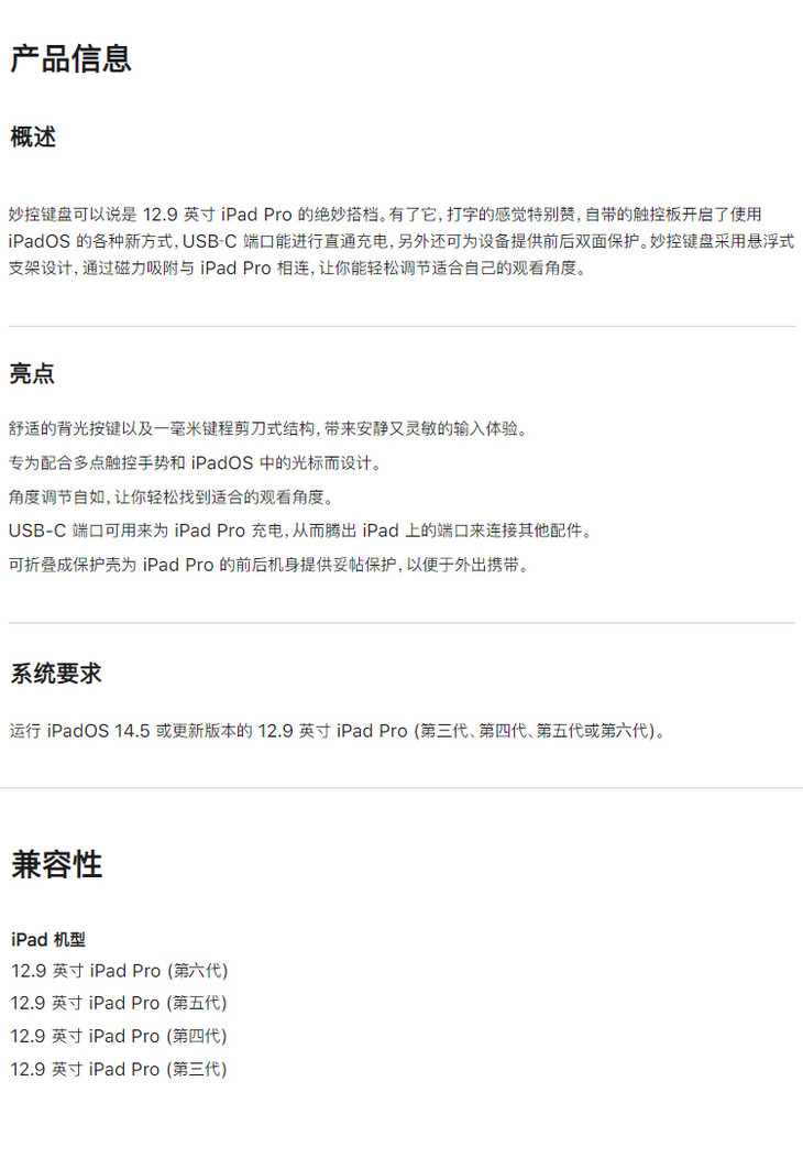 Apple妙控键盘 适用于 12.9 英寸 iPad Pro (第三、四、五及六代)和13英寸iPad Air(第六代、M2芯片) 的妙控键盘