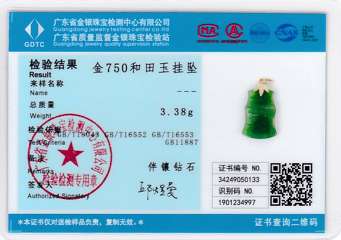 18K玫瑰金和田玉(碧玉)吊坠