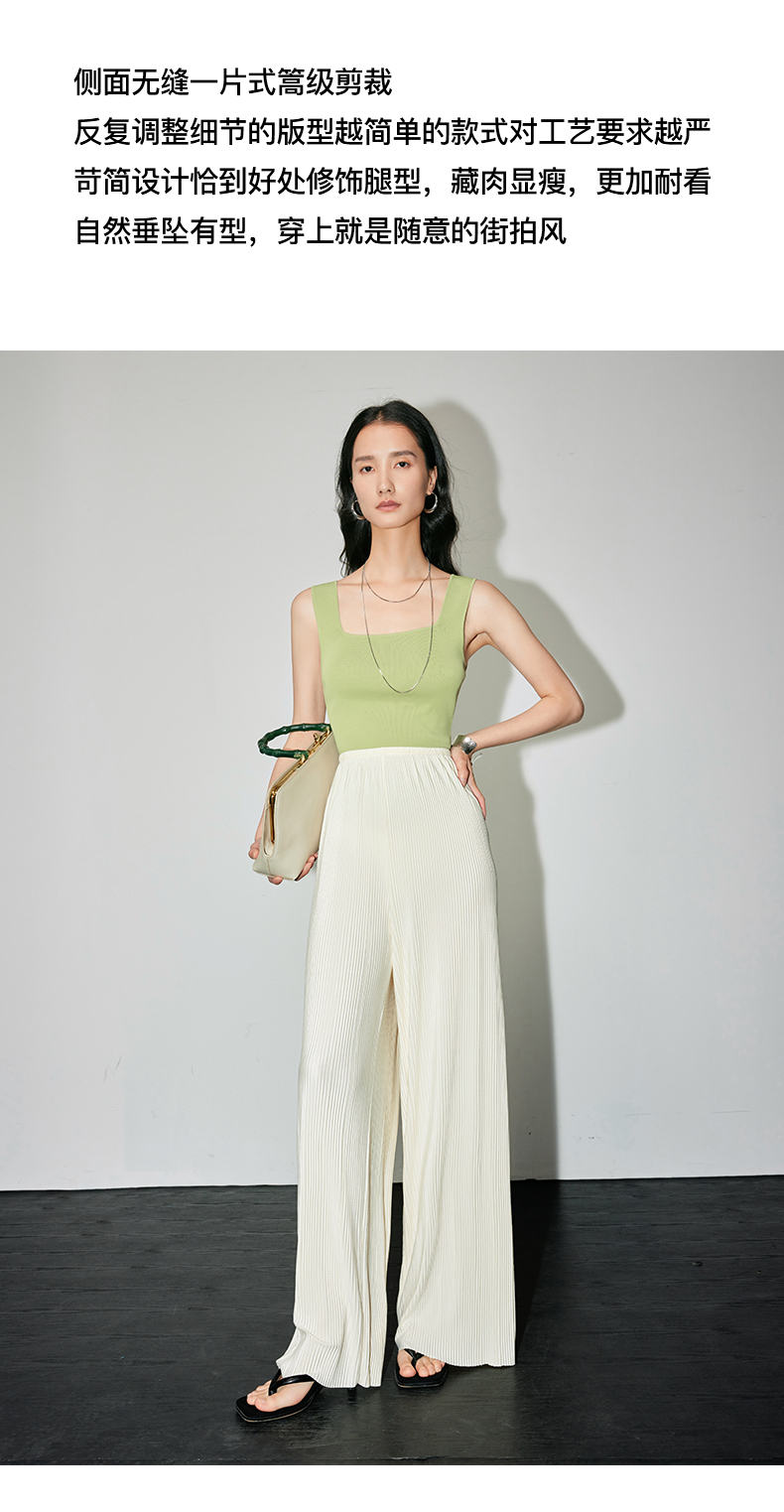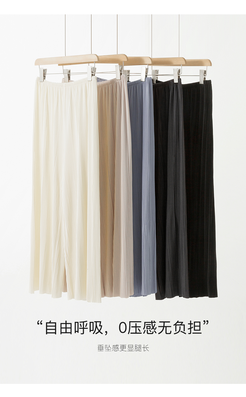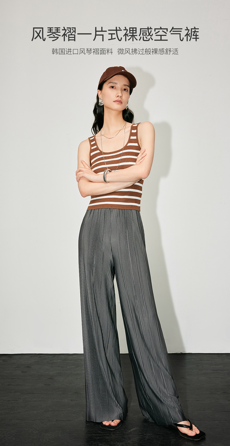 IN AND ON 夏季新款阔腿裤一片式风琴褶空气裤显瘦百搭直筒休闲裤53441 53462