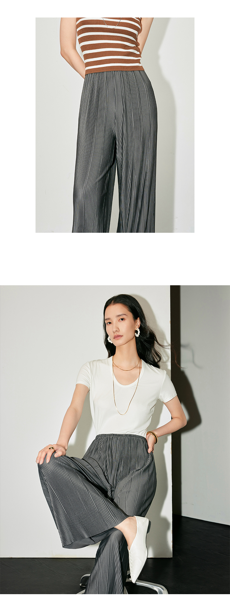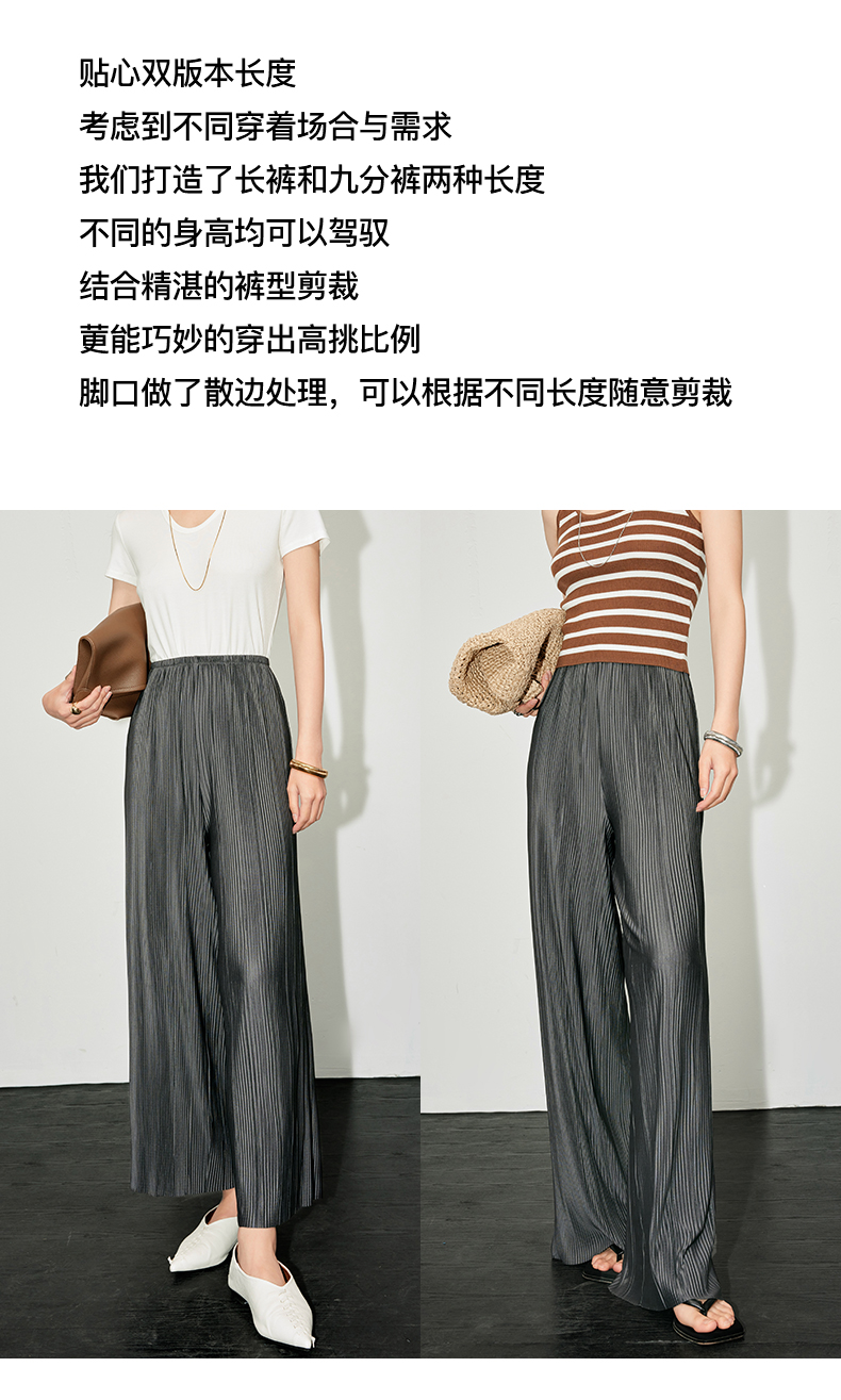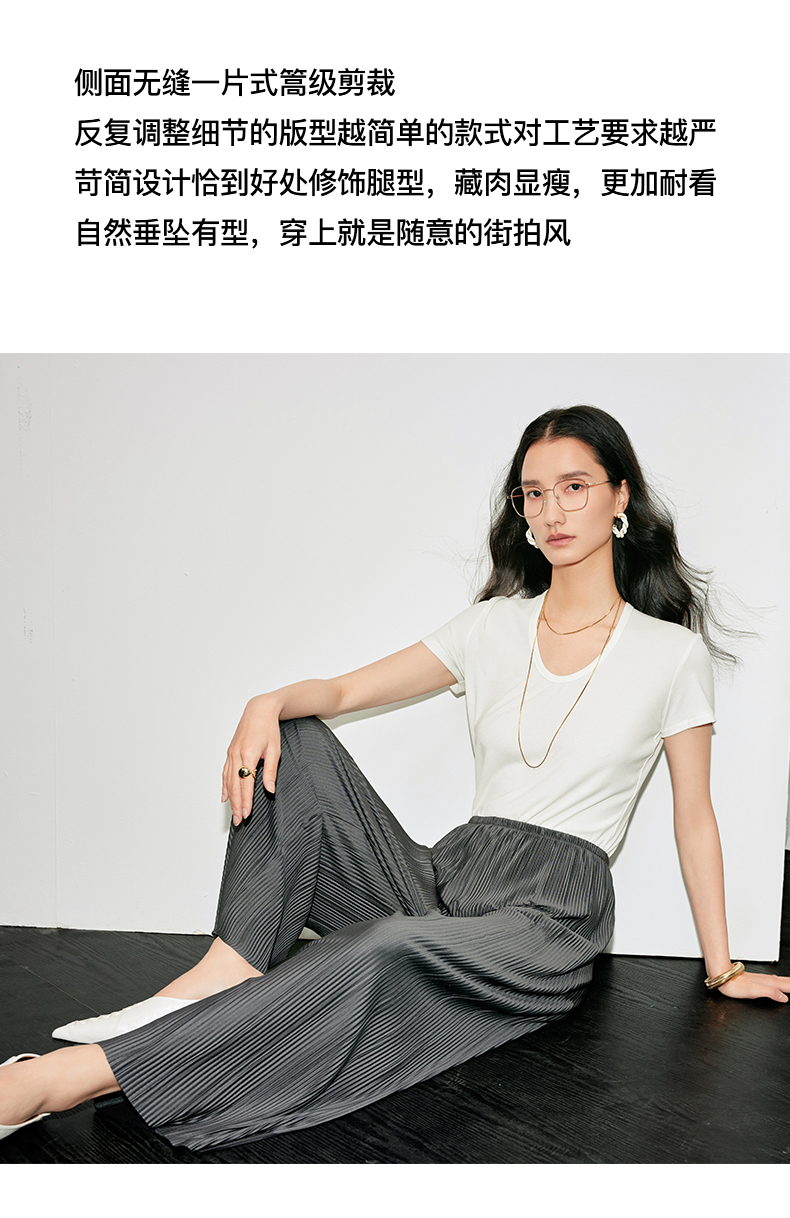 IN AND ON 夏季新款阔腿裤一片式风琴褶空气裤显瘦百搭直筒休闲裤53441 53462