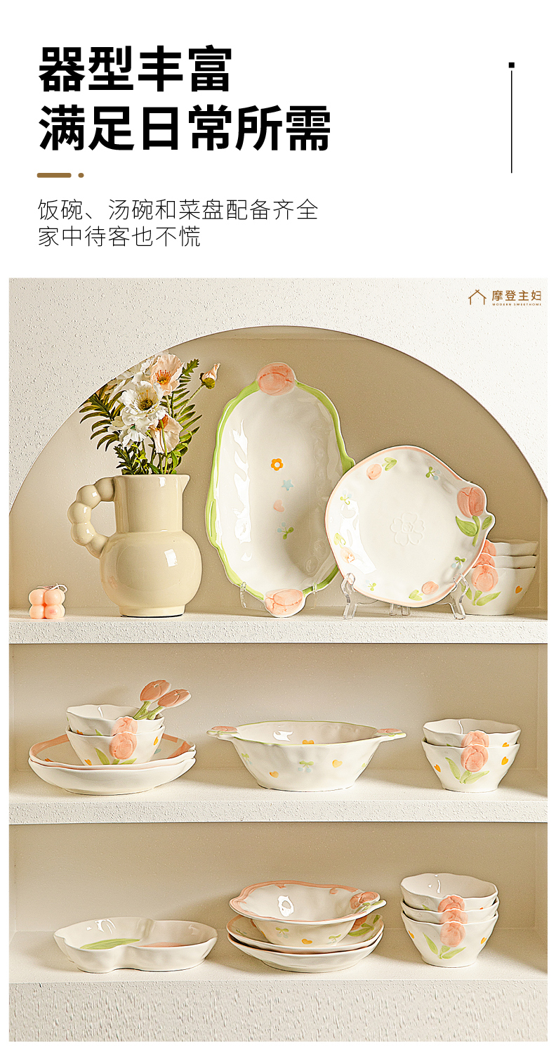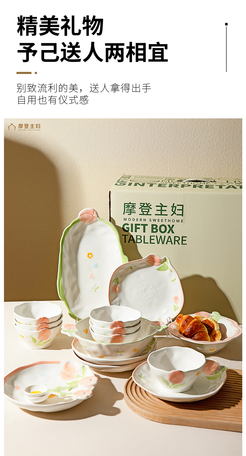 摩登主妇碗碟套装家用餐具陶瓷菜盘子乔迁闺蜜生日礼物釉下彩碗具