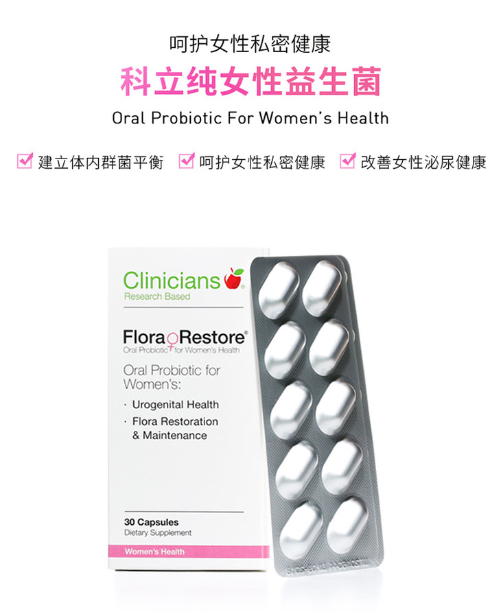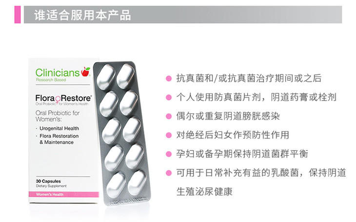 5、clinicians乳酸杆菌GR-1和瑞特乳酸杆菌RC-14. 再临床调查表明,口服GR1和 RC14,对于女性尿道健康维护和修复有显著疗效