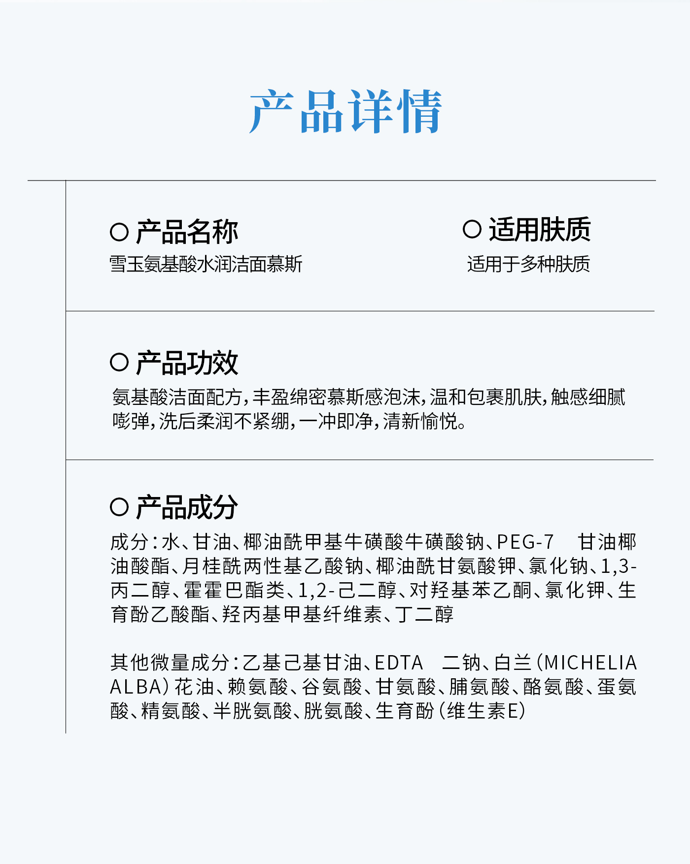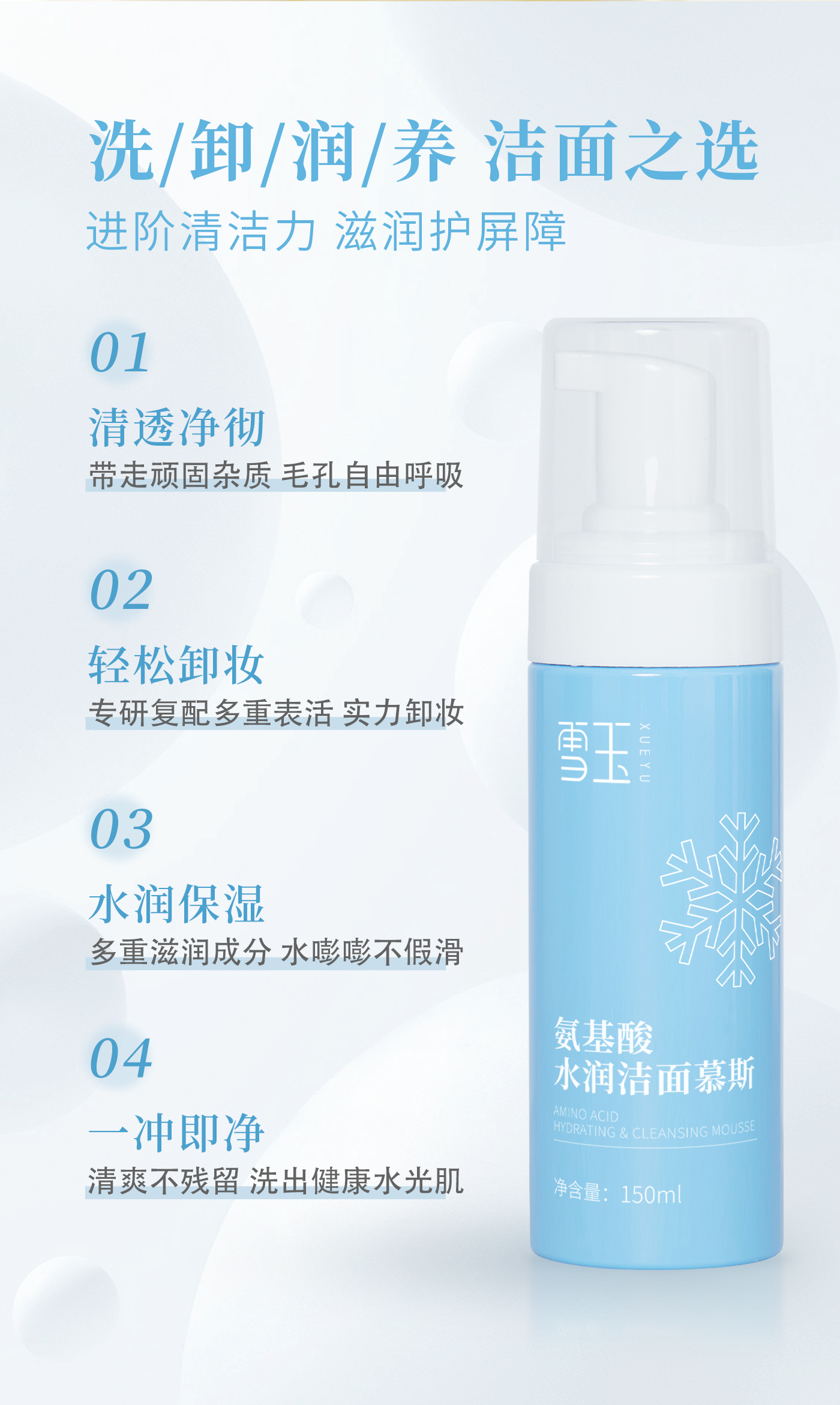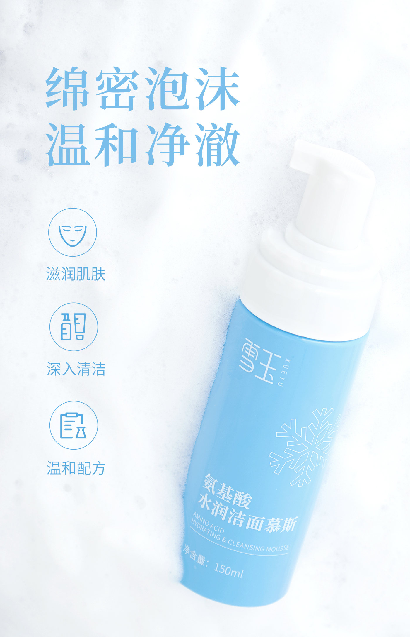 【商品名称】雪玉氨基酸水润洁面慕斯