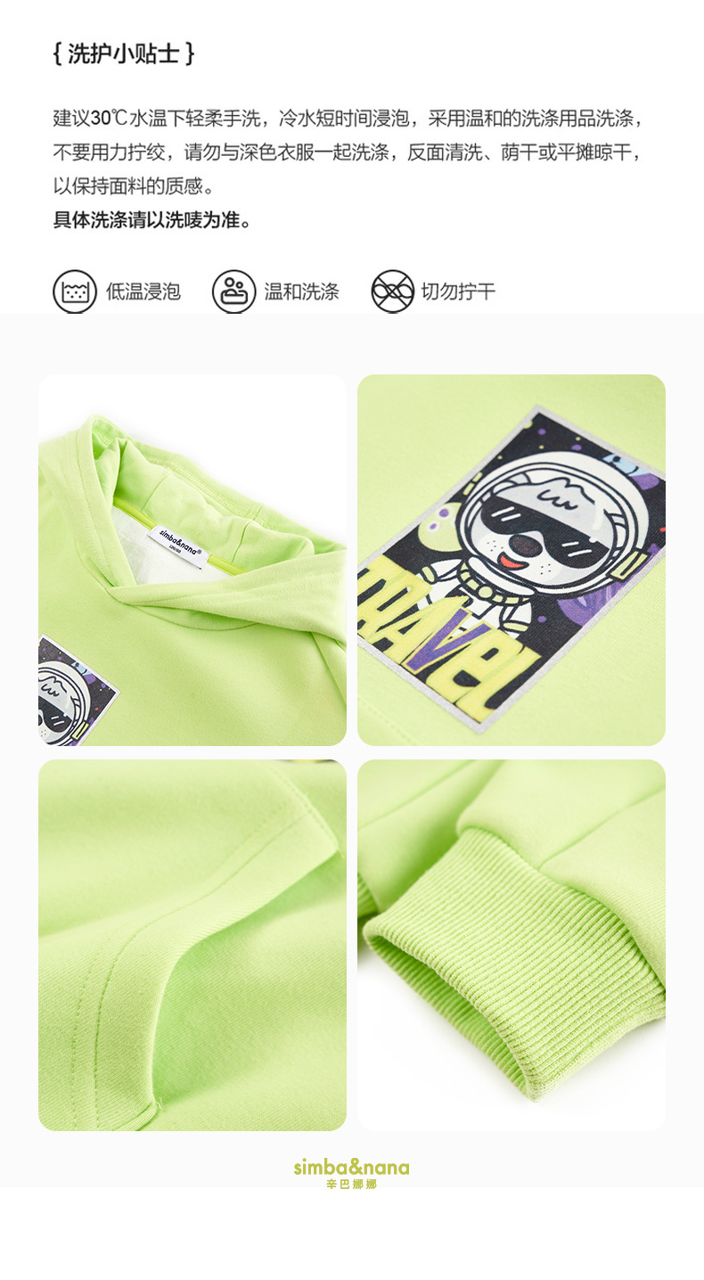 【辛巴娜娜】simbanana【大童】新上新男童秋冬款中大童宽松舒适印花连帽卫衣