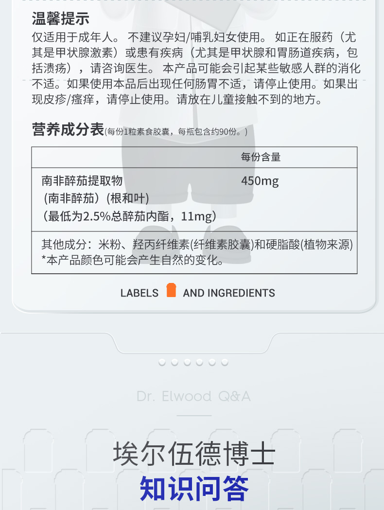 NOW诺奥南非醉茄提取物胶囊450mg90粒/瓶