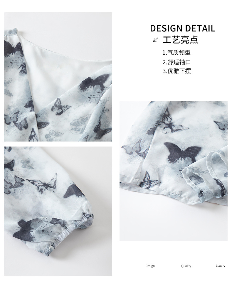 2025夏新款水墨画蝴蝶印花连衣裙CC2650