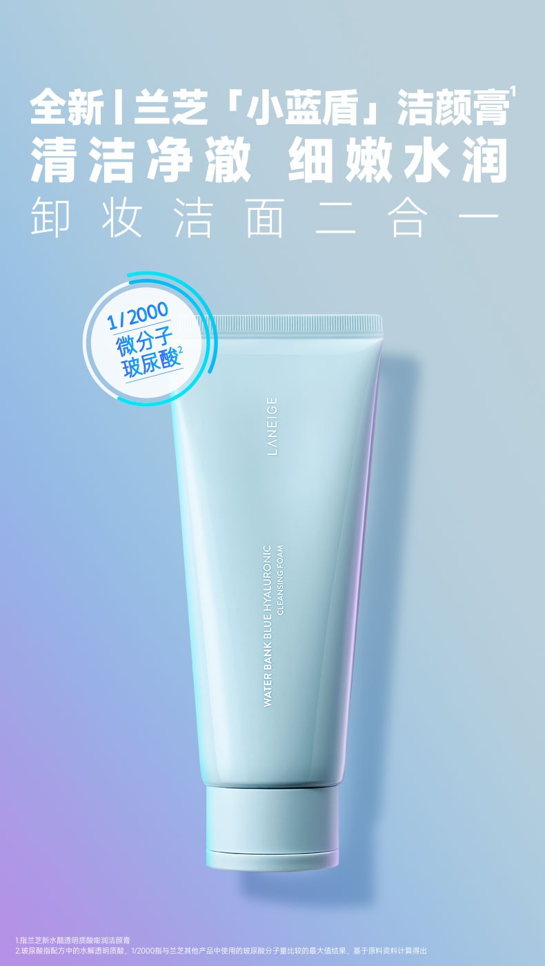 兰芝新水酷透明质酸嘭润卸妆洁面乳150ml 四效合一洗面奶