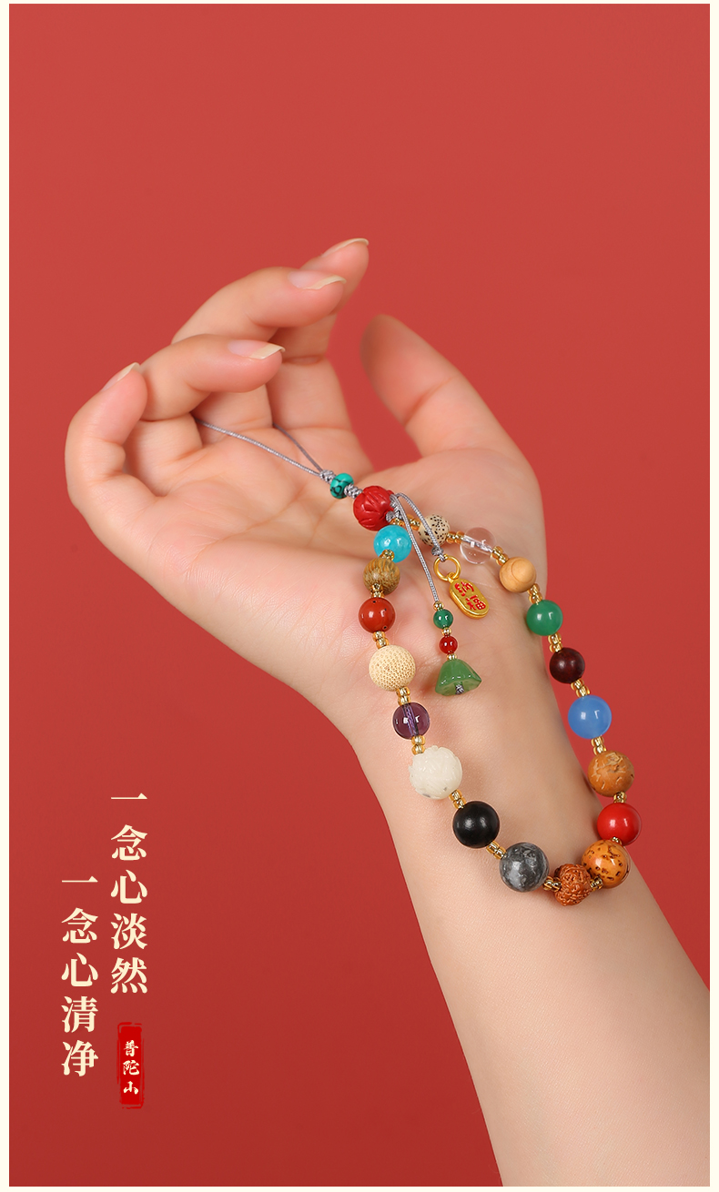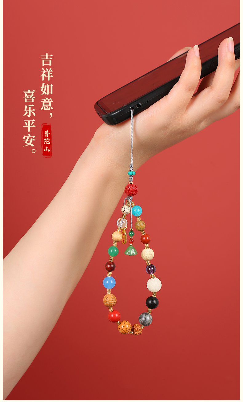 【品牌直发 配有防伪证书】普陀山十八籽手机链/普陀山香灰琉璃手机挂件 质感细腻 色泽亮丽