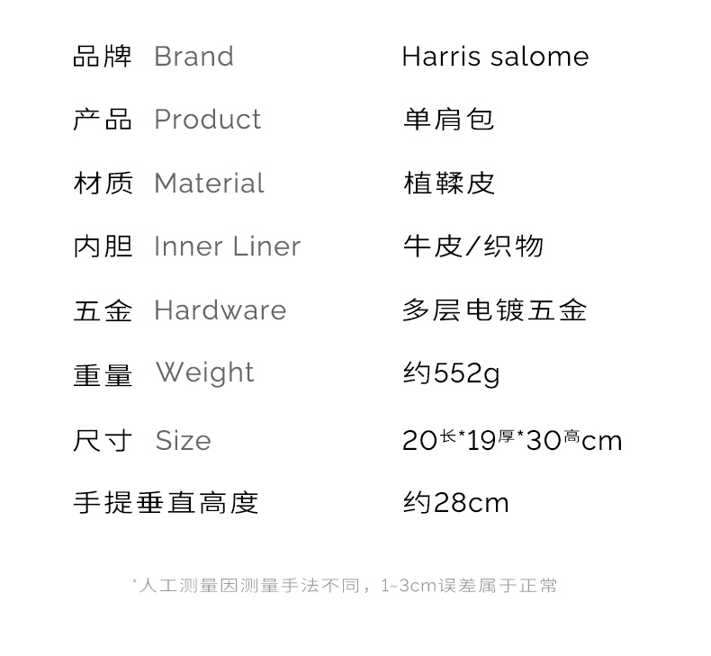 (小眠专属)Harris Salome植鞣皮古朴柔光单肩包简约通勤托特包