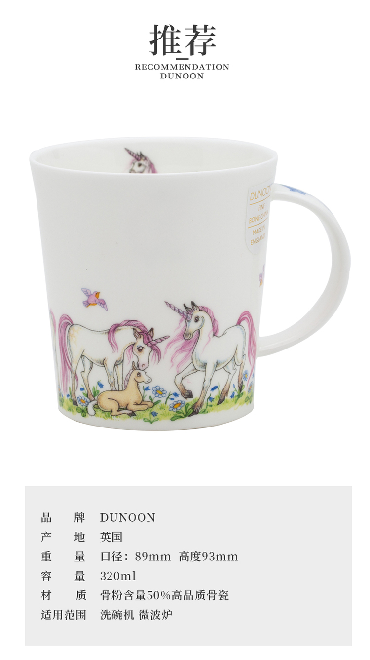英国原产丹侬Dunoon骨瓷水杯马克杯茶杯LOMOND型 独角兽