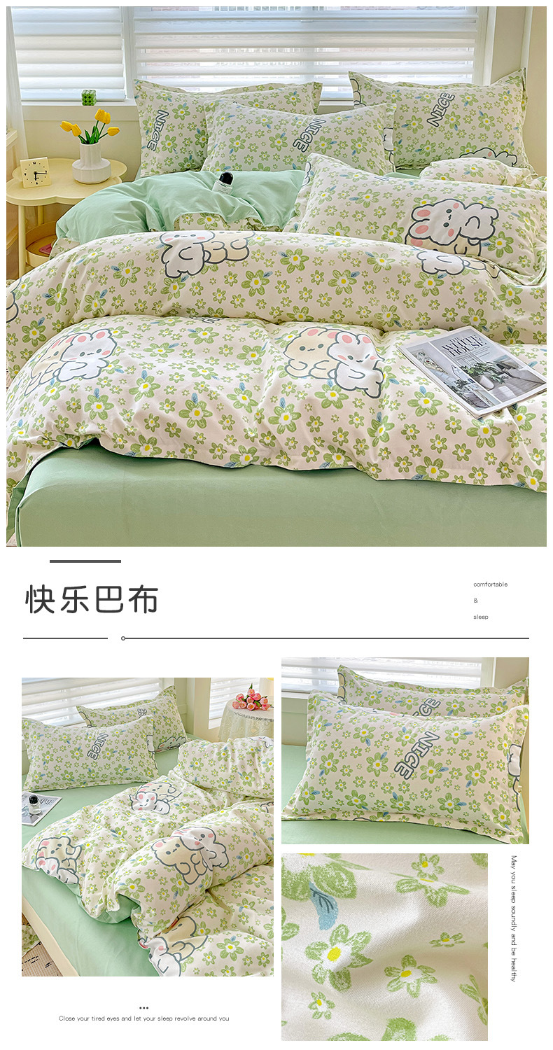 春夏季【A类小清新四件套】水洗棉床单被套枕套 学生宿舍三件套罩ins 开学季