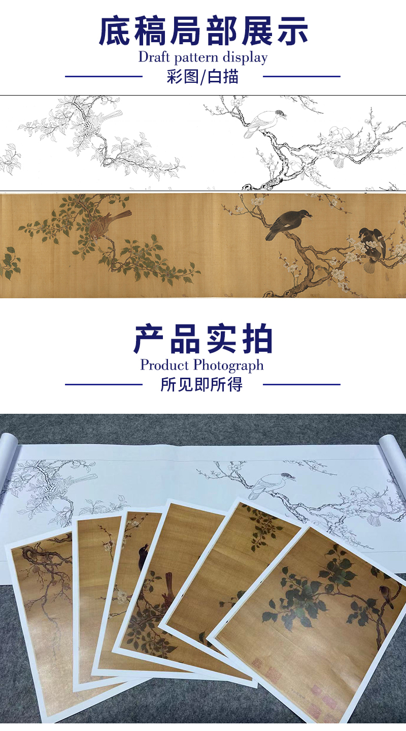 【长卷】工笔花鸟画白描底稿古画长卷佚名《花卉翎毛图》多种白描尺寸可选G039