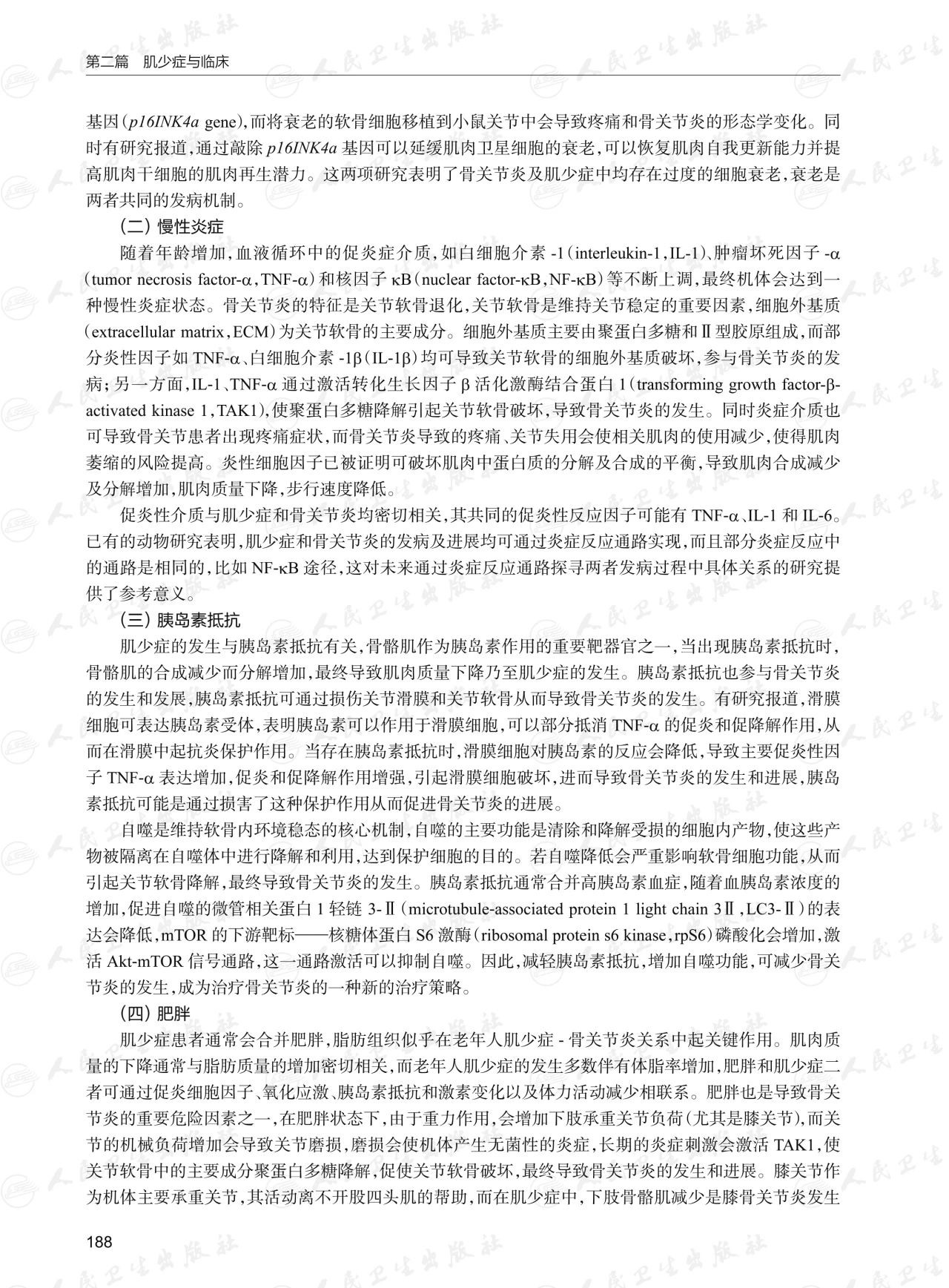 肌少症是近十年来全球衰老领域研究的热点,2016年被WHO收录ICD-10疾病编码中成为一种独立诊断的疾病,因此目前的研究成果多以学术论文的形式在全球各类型的期刊上发表,国内外少见系统阐述肌肉减少症的学术专著发表。本书主要面向老年医学和神经学科的临床工作医务人员和衰老研究领域的科技工作人员,全书共45章,具体包括肌少症的基础研究和临床医学,全面深入地探讨肌肉减少症的病因、发病机制、流行病学特点、诊断及治疗进展、疾病预后以及与其他疾病之间的联系等。