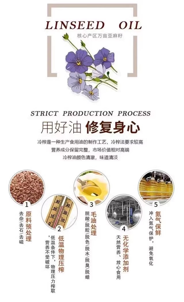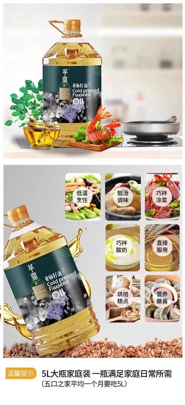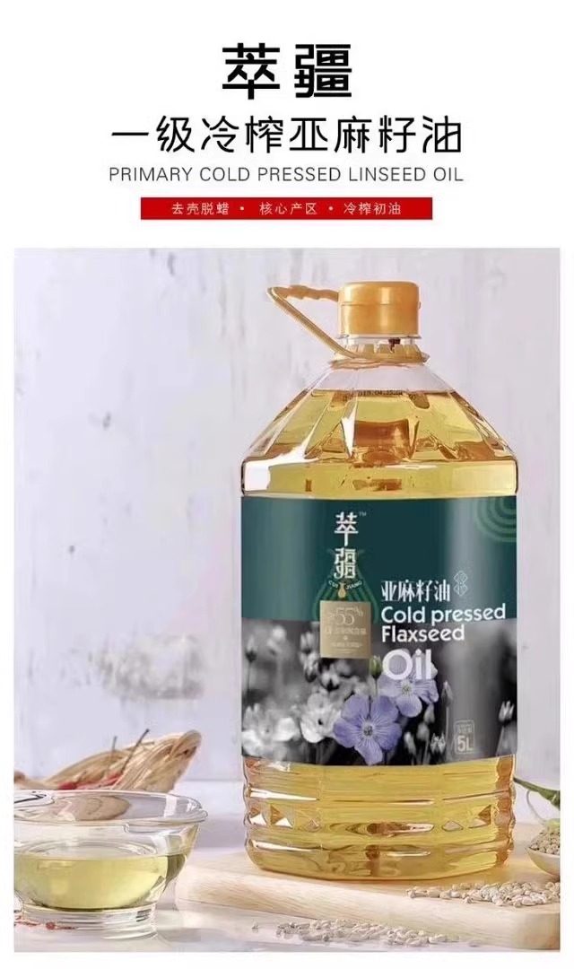 萃疆·一级冷榨亚麻籽油 5L 色泽透亮无杂质 家庭常备食用油
