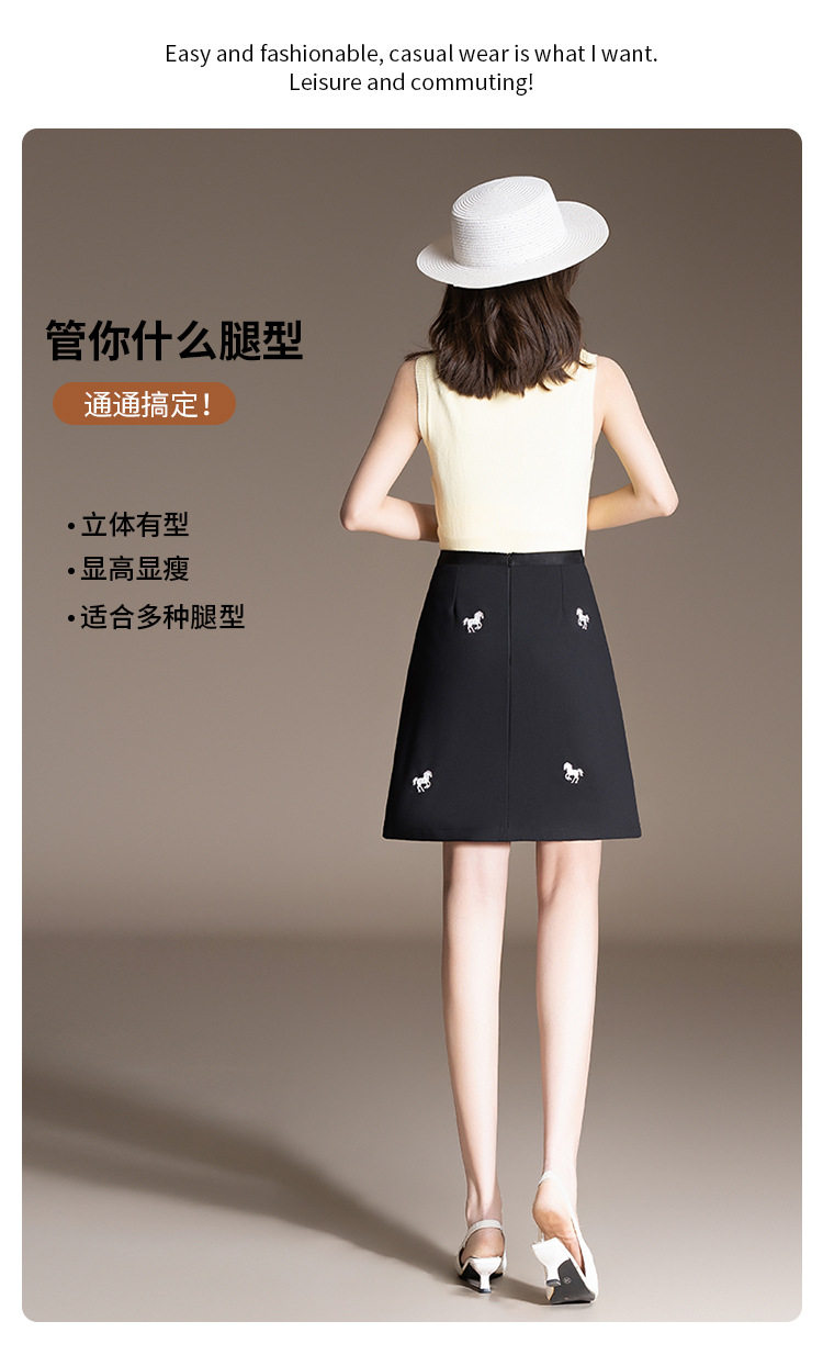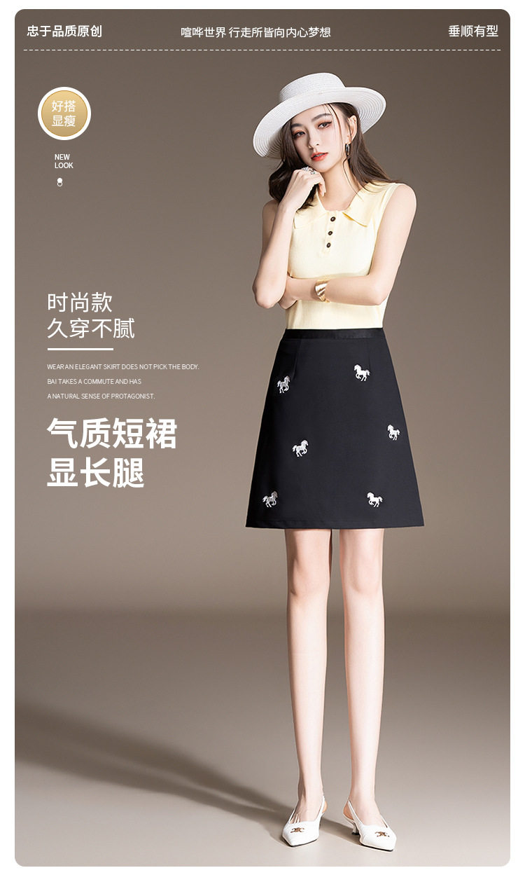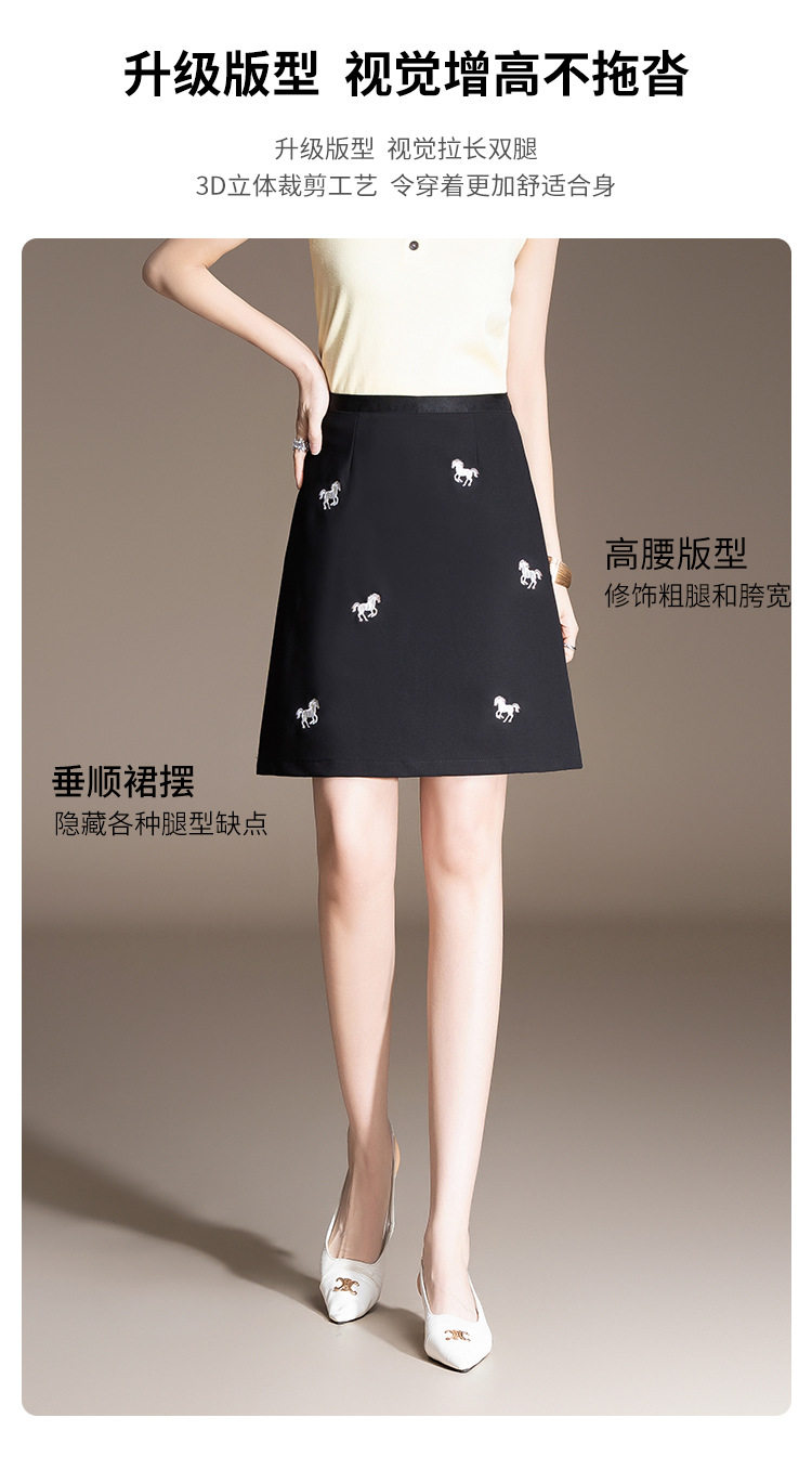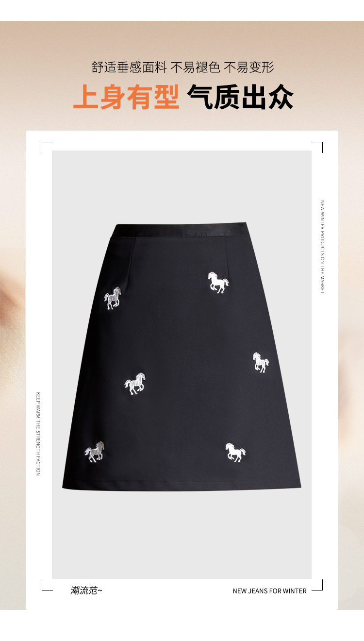 「自」全新升级【铂金会员137/天猫179/差价42】(24557)洛诗琳新款百搭直筒半身裙2026春季复古高腰刺绣显瘦A字裙