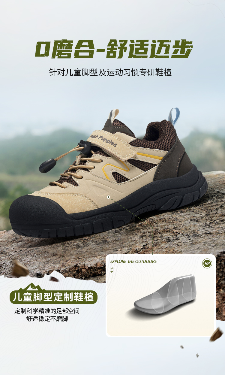 软底跑步鞋HP5605016 | 暇步士 质感拼接面料 提升户外探索体验 儿童软底跑步鞋HP5605016