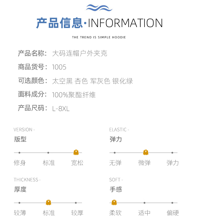 【新款DNY】大依优型大码男装连帽夹克加肥加大休闲夹克胖子宽松防风外套上衣