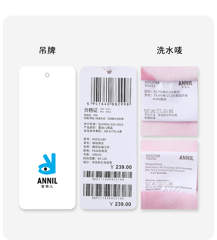 【实体店同款】女童圆领长袖卫衣秋季新款安奈儿童装XG531189