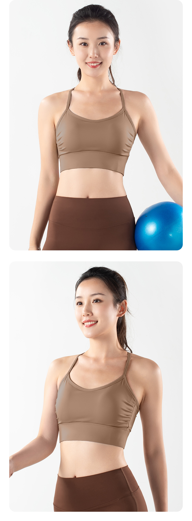 跃牌【倚窗听雨系列】褶皱聚拢防震高强度瑜伽背心Wx28-23