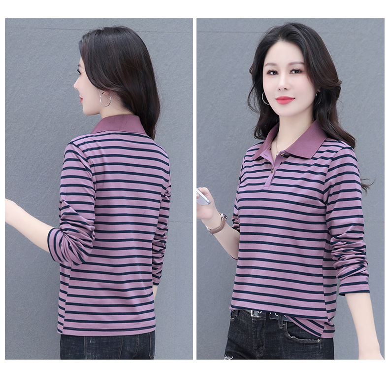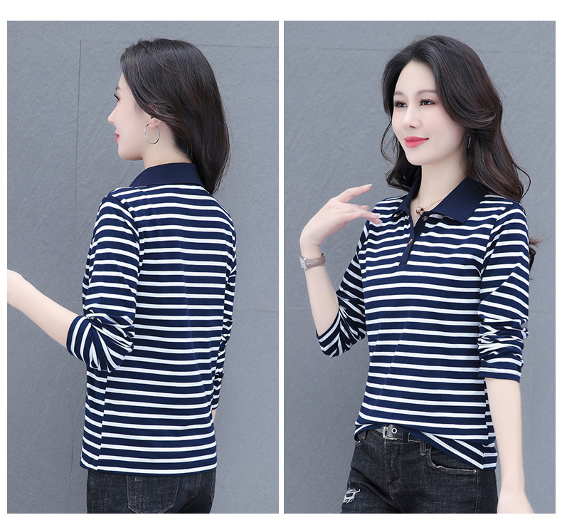 百媚生 95棉polo衫条纹长袖T恤6599 商品图2