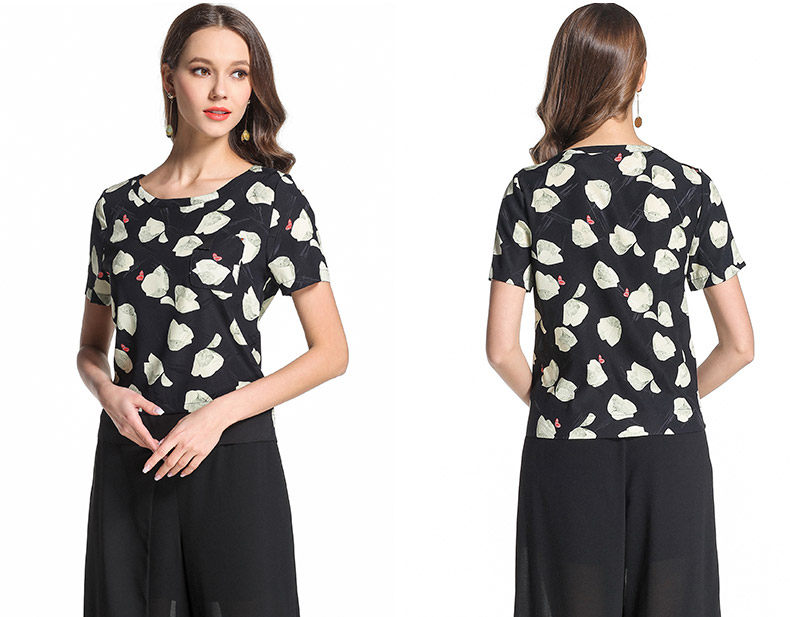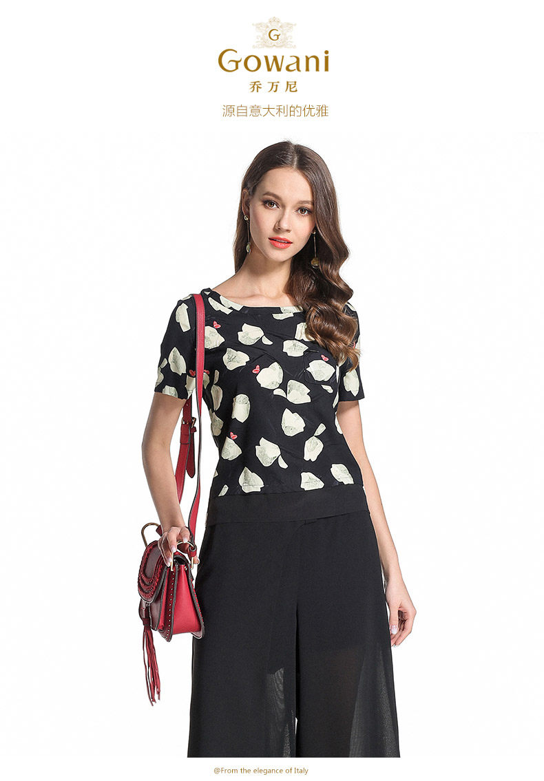 乔万尼夏季桑蚕丝上衣印花大花朵衬衫EB2C819