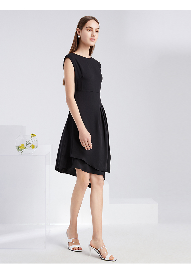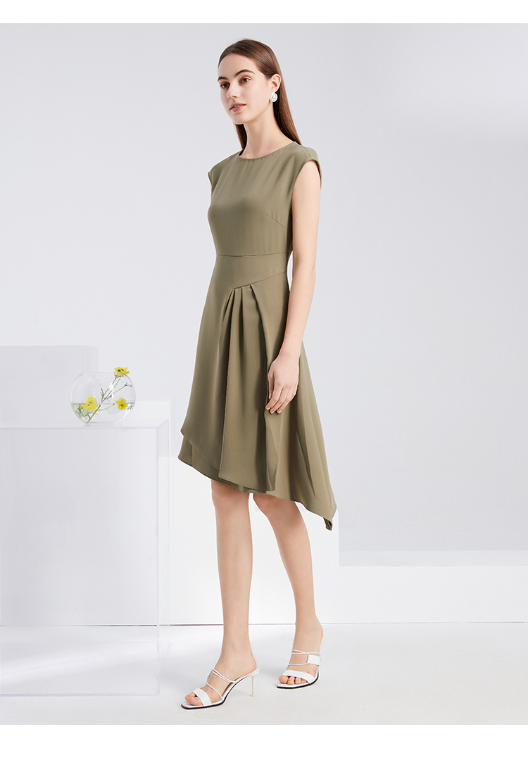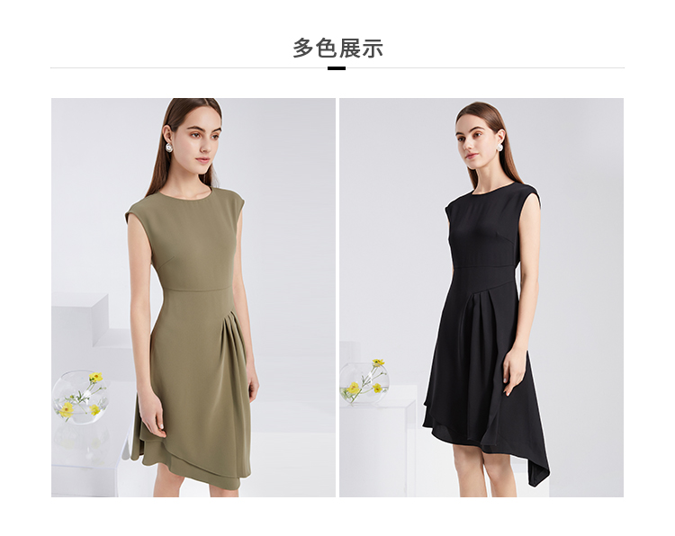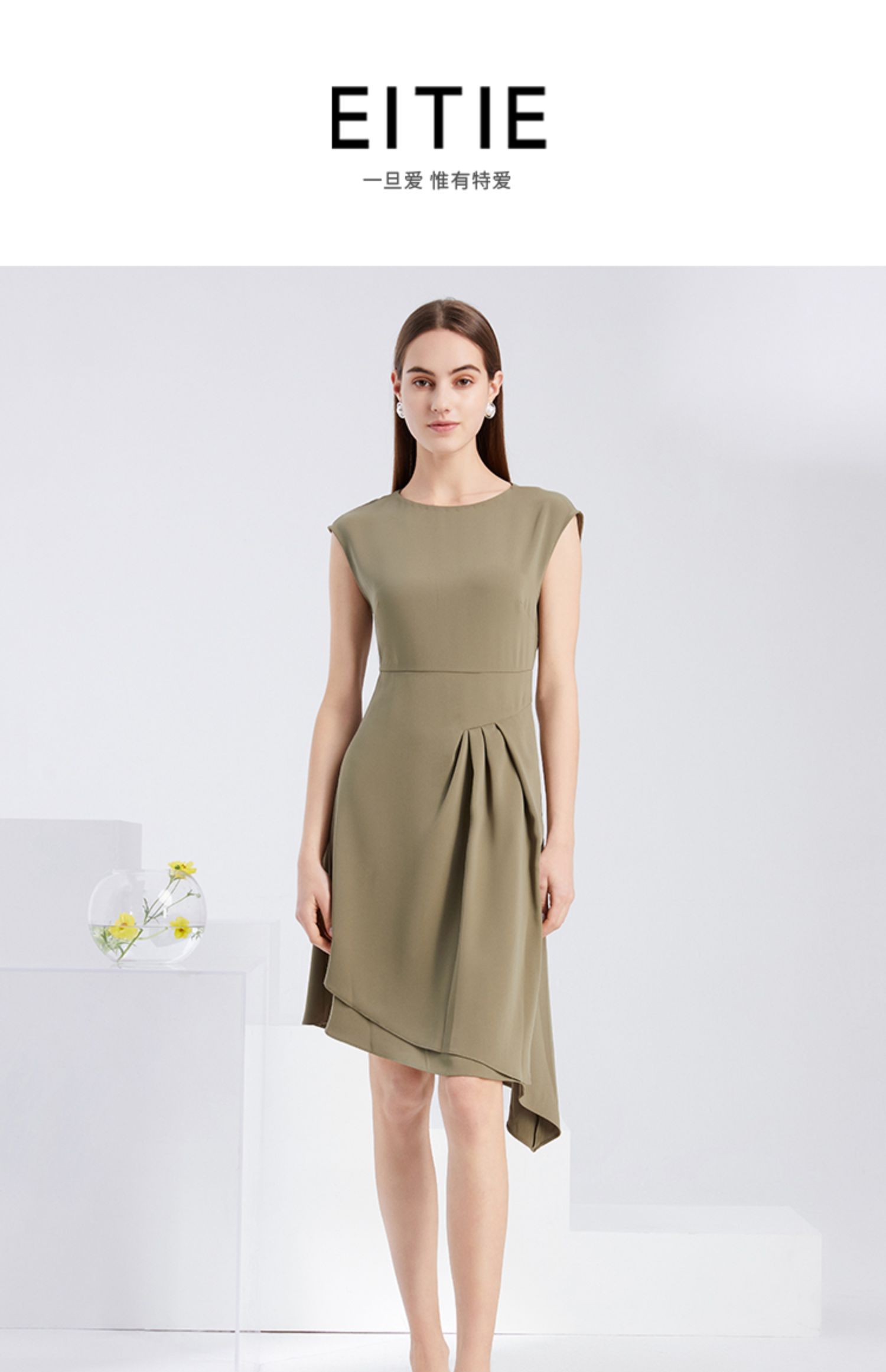 下架-EITIE爱特爱夏季新款时尚气质包肩袖收腰显瘦A版连衣裙中裙女6207909