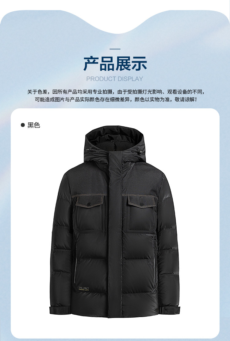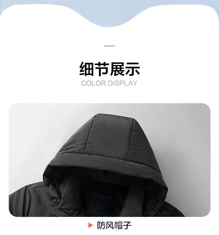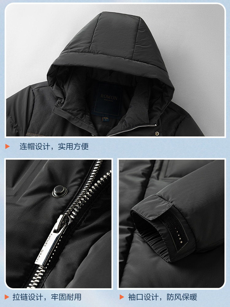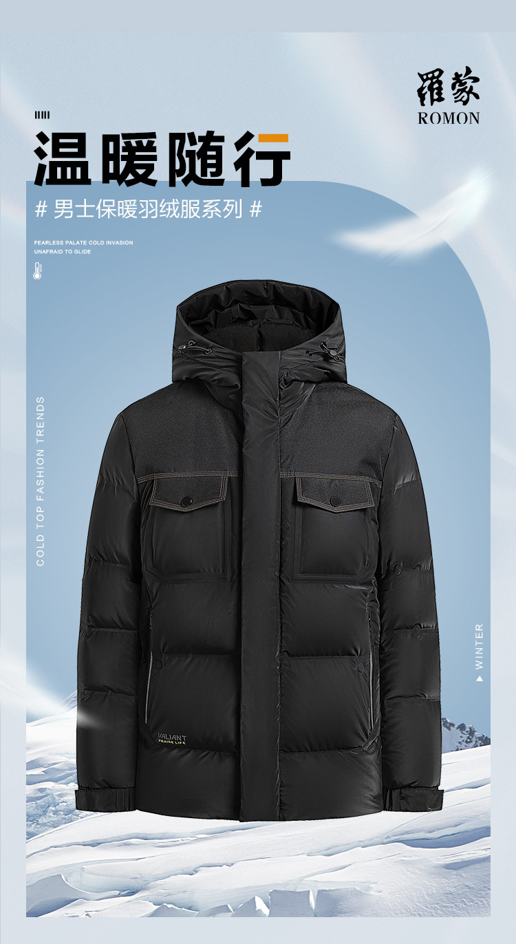 30W2210【90白鸭绒】罗蒙男士羽绒服冬季厚实保暖休闲连帽羽绒外套