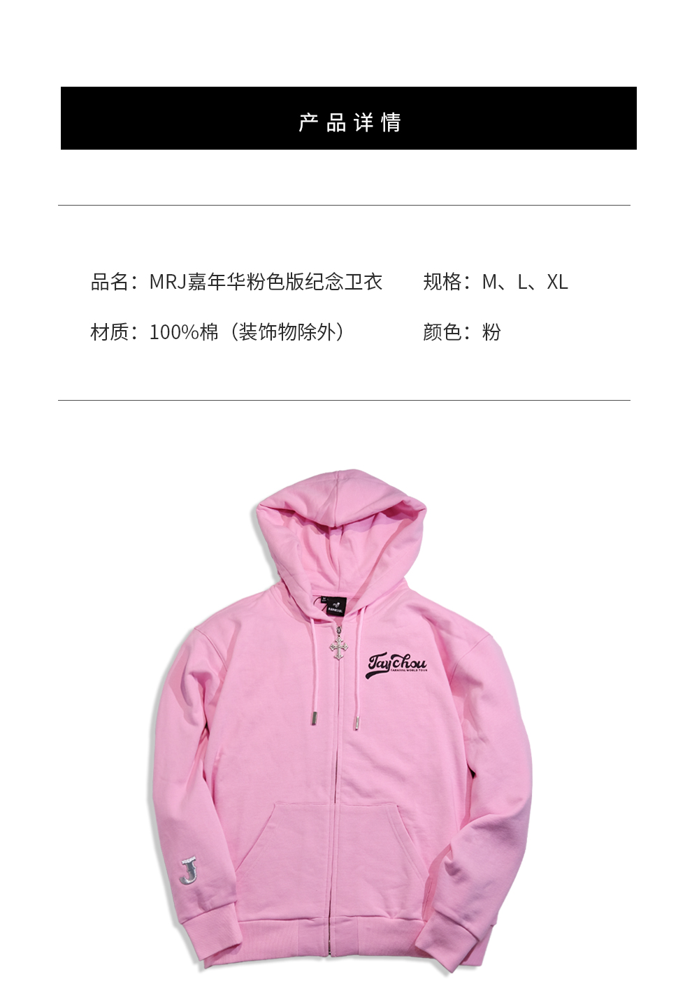 周杰伦嘉年华演唱会MRJ粉色连帽拉链卫衣1011纪念版